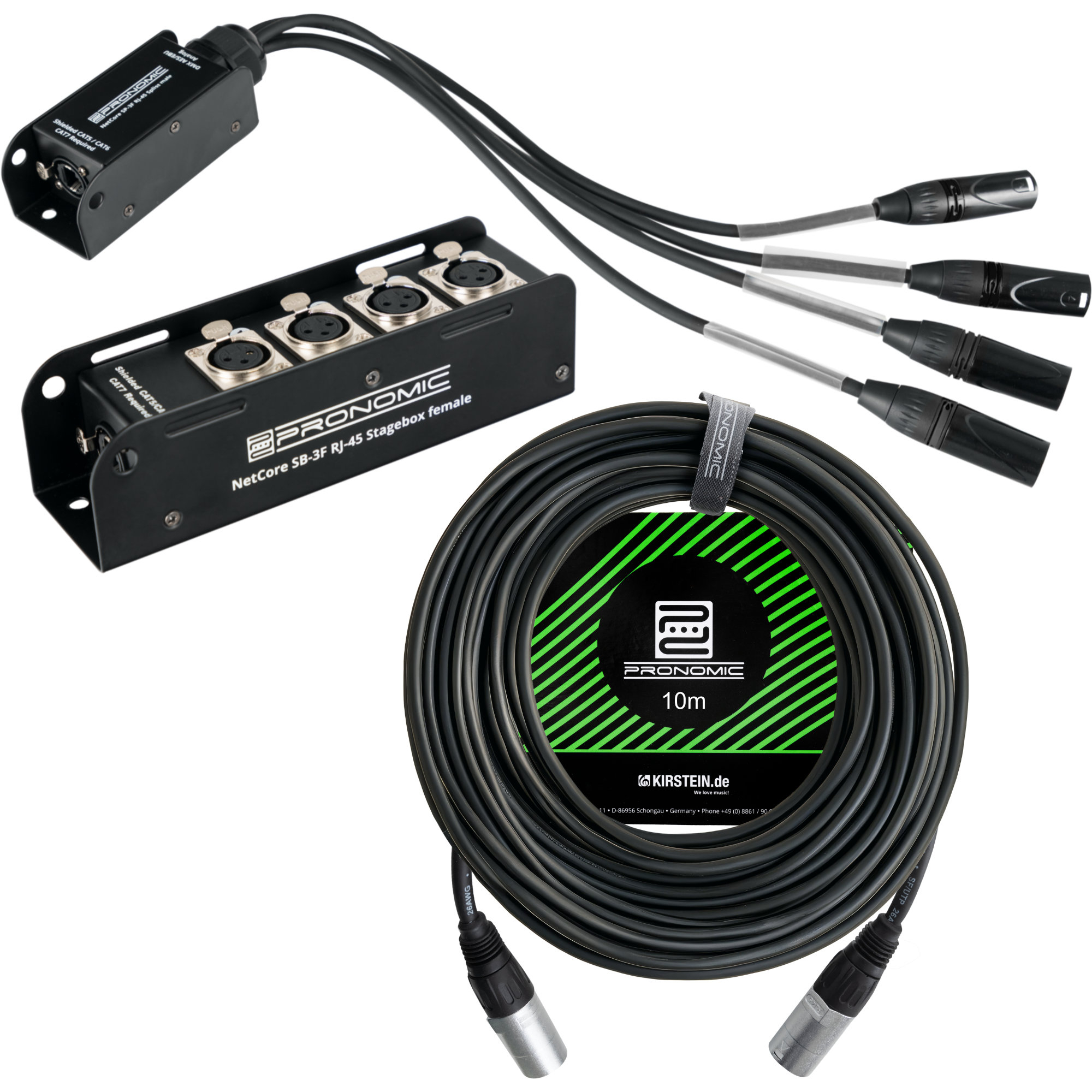 Besoin rapidement dun multicore 4 canaux dune longueur au choix ? Aucun problème ! Le système NetCore de Pronomic transporte à la fois des signaux analogiques et numériques via un câble réseau fin.