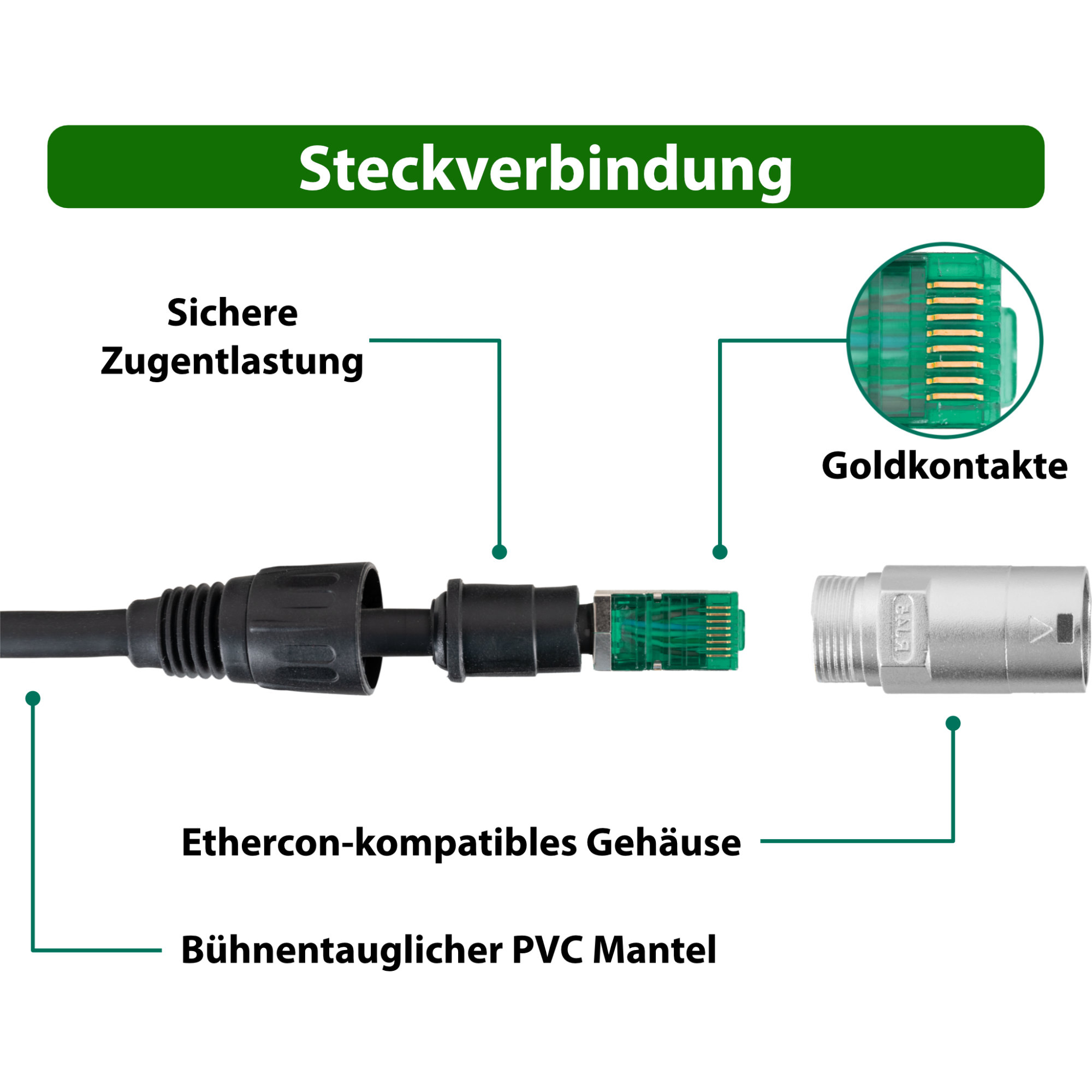 - Connecteurs RJ45 plaqués or, compatibles Ethercon, pour une connexion fiable