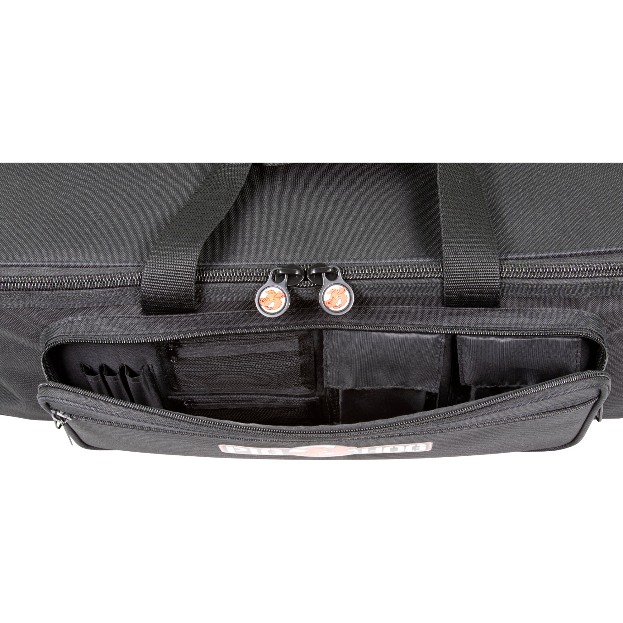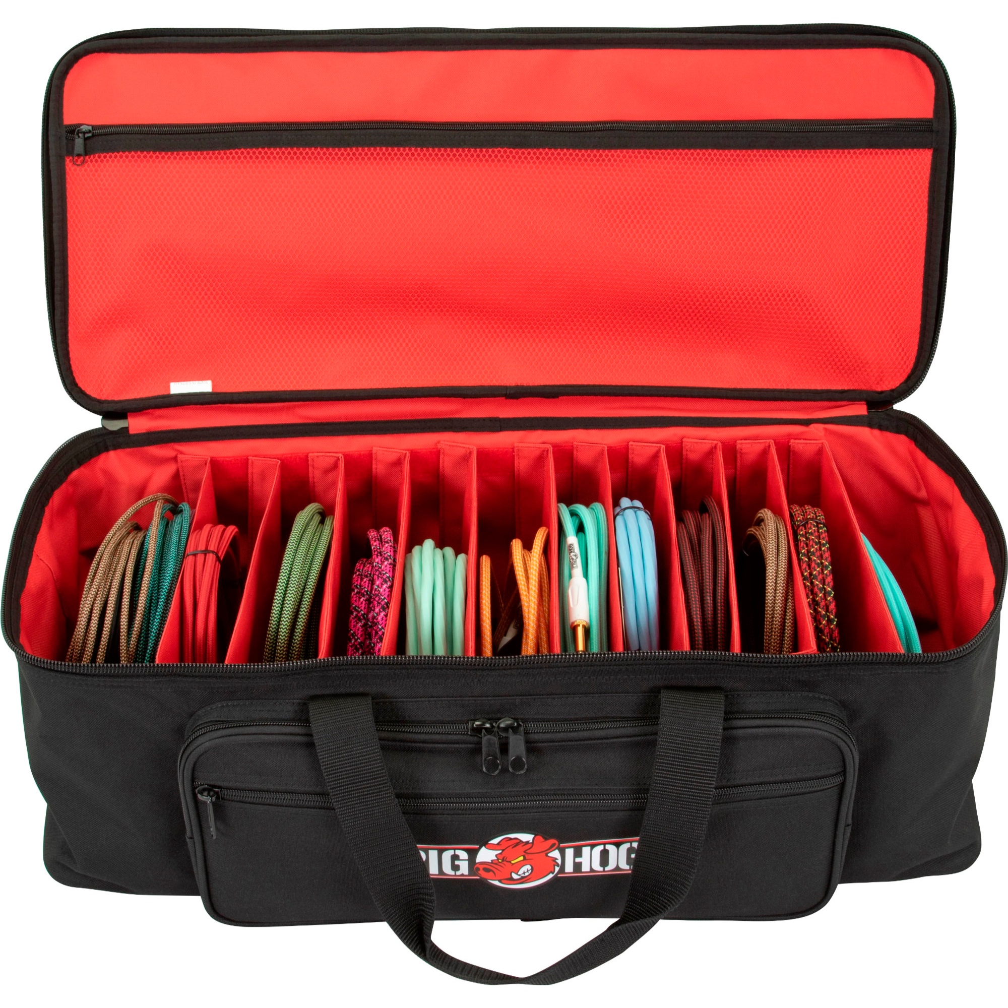 Les poignées robustes et la bandoulière amovible sont rembourrées pour faciliter le transport. Pour la gestion de vos câbles, n'acceptez rien d'autre que le sac organisateur Pig Hog.