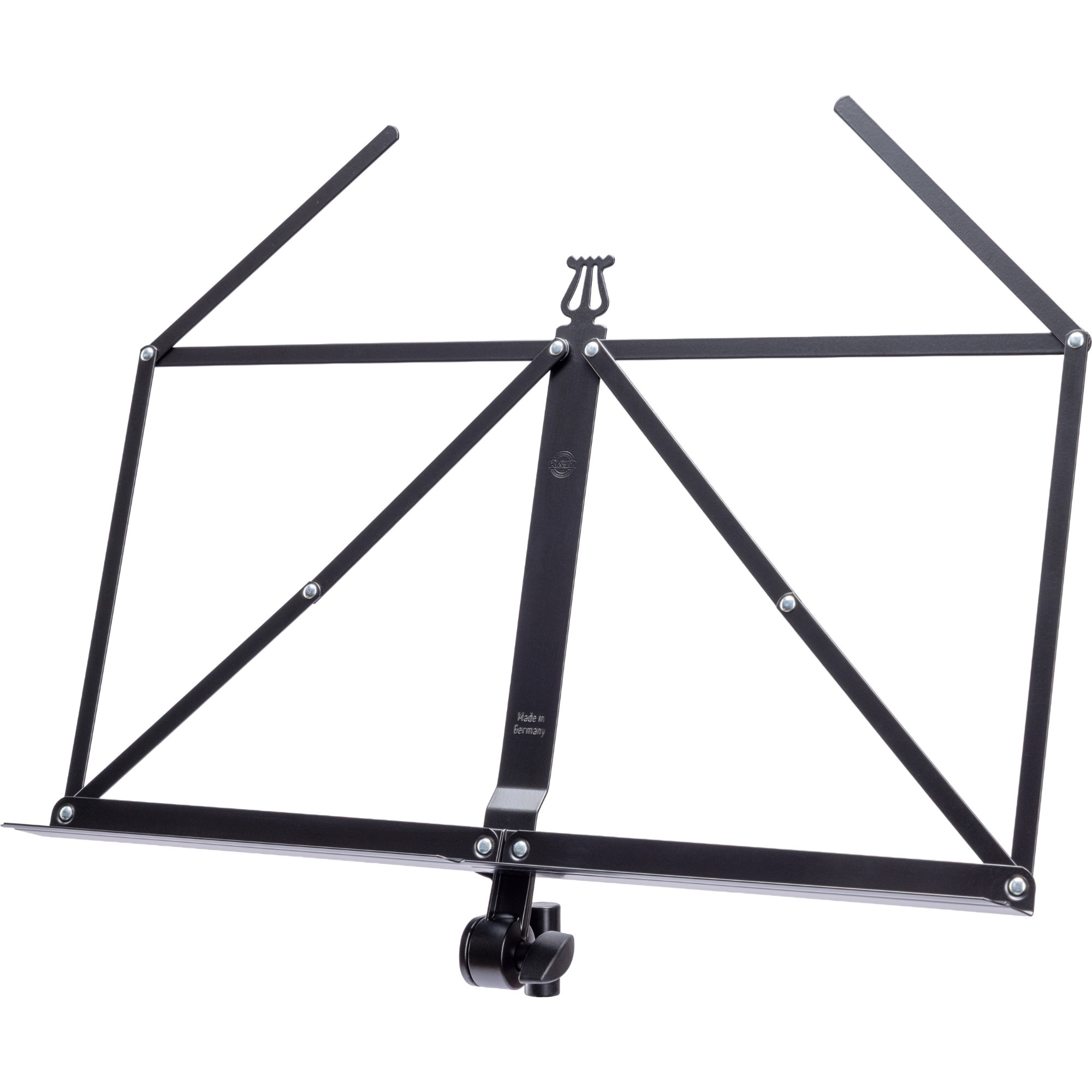 Le bundle se compose du trépied éprouvé K&M 19788, qui se déploie en 2 étapes de 62 - 147 cm. Sur le trépied, on peut visser via un filetage 3/8" la tête de pupitre K&M classique lorsque l'on joue à partir de cahiers ou que l'orchestre distribue une nouvelle liasse de partitions.
