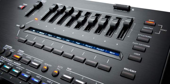 Le Pa5X est équipé d'une section de contrôle comprenant 9 boutons et 9 curseurs assignables. Tu peux leur attribuer n'importe quelle fonction : volume du mixeur, drawbars, mute/activation du micro, inversion de basse, défilement des paroles et bien plus.