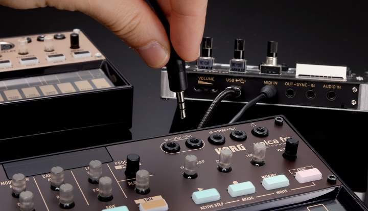 En plus de la prise MIDI IN, le nouveau volca fm dispose d’une sortie MIDI OUT (IN/OUT jack stéréo 3,5 mm).