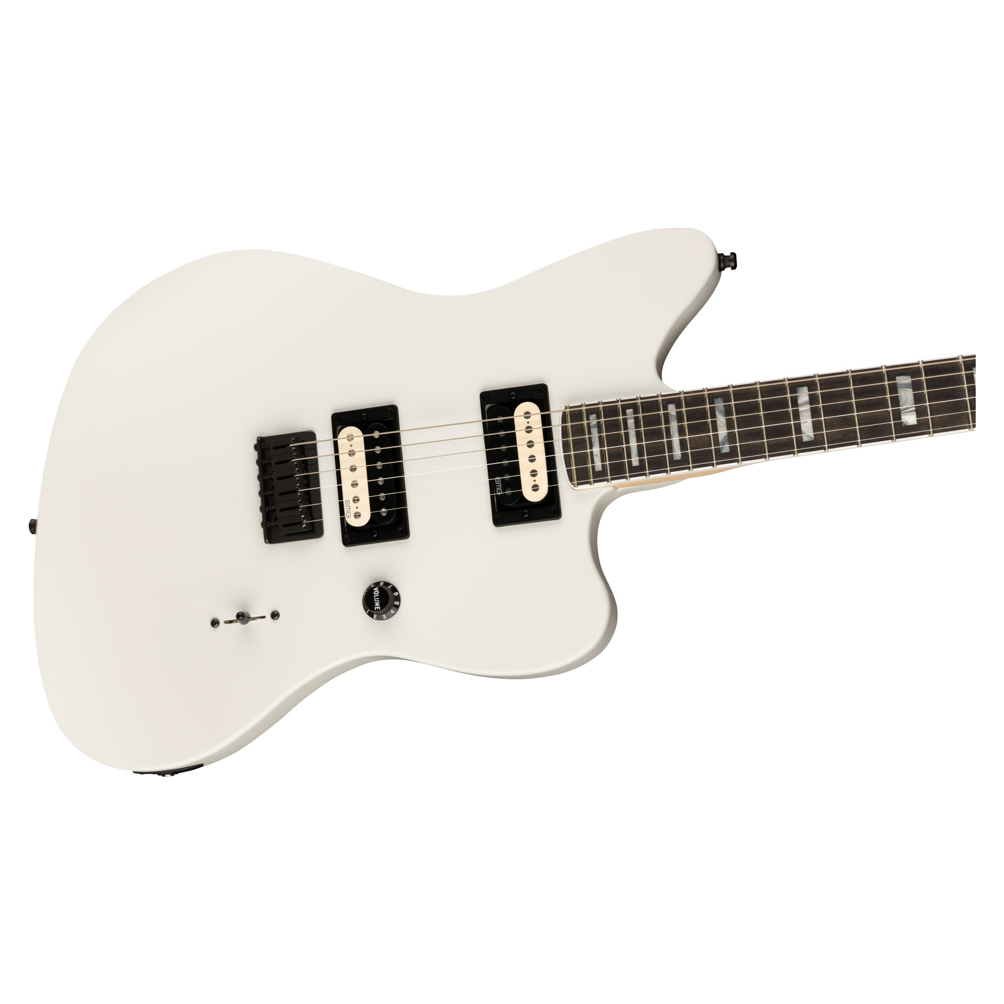 Die Jim Root Jazzmaster II verzichtet auf Spielereien wie Regler für Vibrato, Rhythm Circuit oder Tone und beschränkt sich auf das Wesentliche: Volume-Regler, 3-Wege-Schalter und Hardtail-Bridge. Damit ist diese Gitarre eine quasi eine unschlagbare Präzisionswaffe. Der Slab-Body aus Mahagoni unterstützt druckvolle Bässe und Mitten. Weitere Details: brillantes Satinfinish in Polar White, Ahornhals mit eingefasstem Ebenholz-Griffbrett und Perloid Block-Inlays. Brutalster Tone mit eleganter Optik!