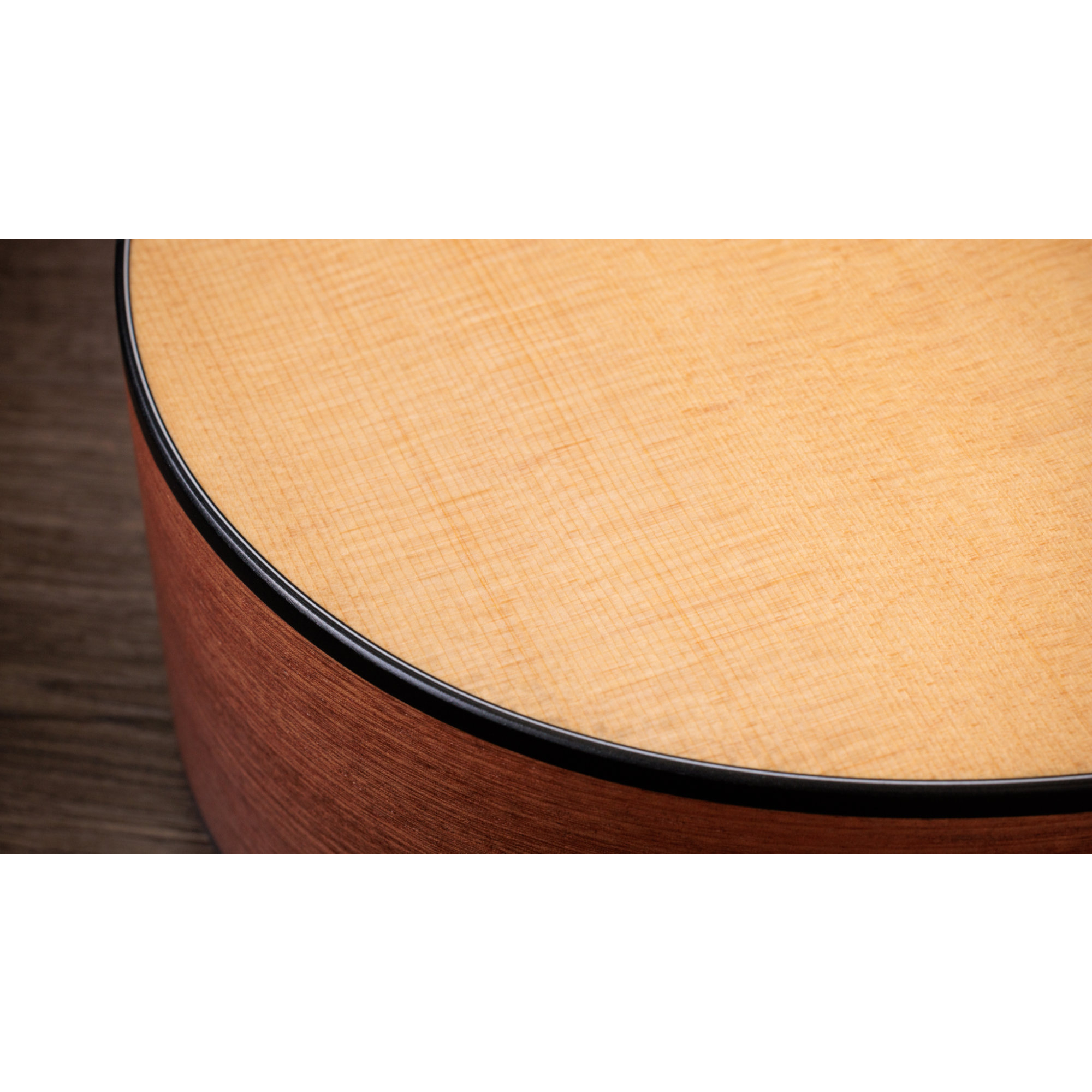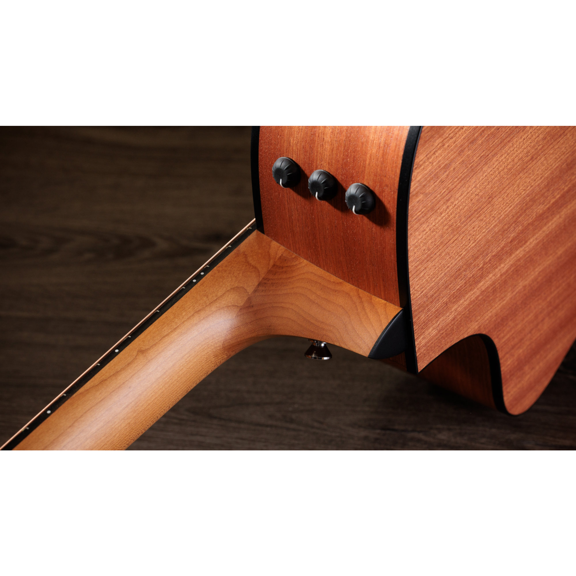 Une table en épicéa massif délivre un son puissant et percutant, au caractère équilibré et clair, ce qui en fait un excellent choix pour les guitaristes fingerstyle ainsi que pour les flatpickers et les strummers. Débutants comme joueurs confirmés apprécieront la réactivité et le confort de jeu du manche fin Taylor, et grâce à l'électronique intégrée Expression System 2 vous disposerez d'un son acoustique authentique dès que vous branchez la guitare à un ampli ou à une sono.