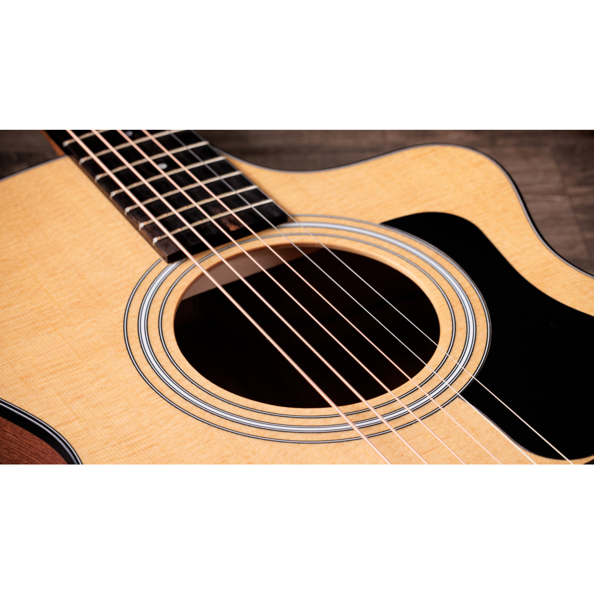 Les musiciens apprécient les guitares acoustiques Grand Concert à pan coupé pour leur son clair et leur format compact, et la 112ce répond à ces critères à un prix particulièrement adapté aux débutants.