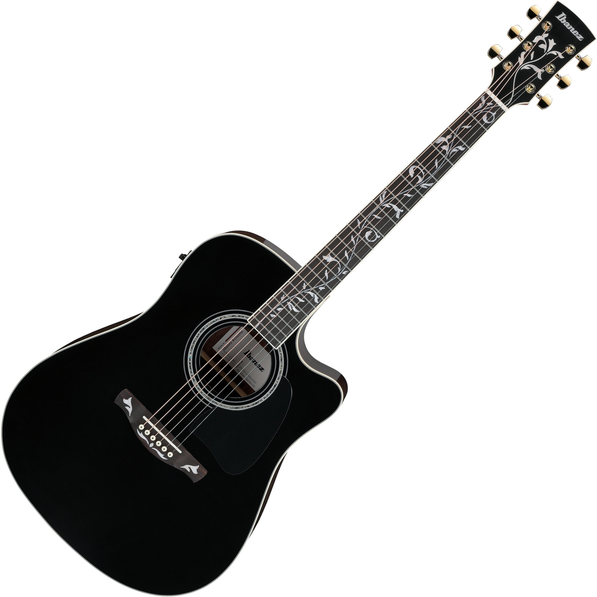 Ibanez AW391RCE-BKH Artwood AW Guitare Acoustique 6 Cordes - Table Black High Gloss, Fond Et Éclisses Natural High Gloss!