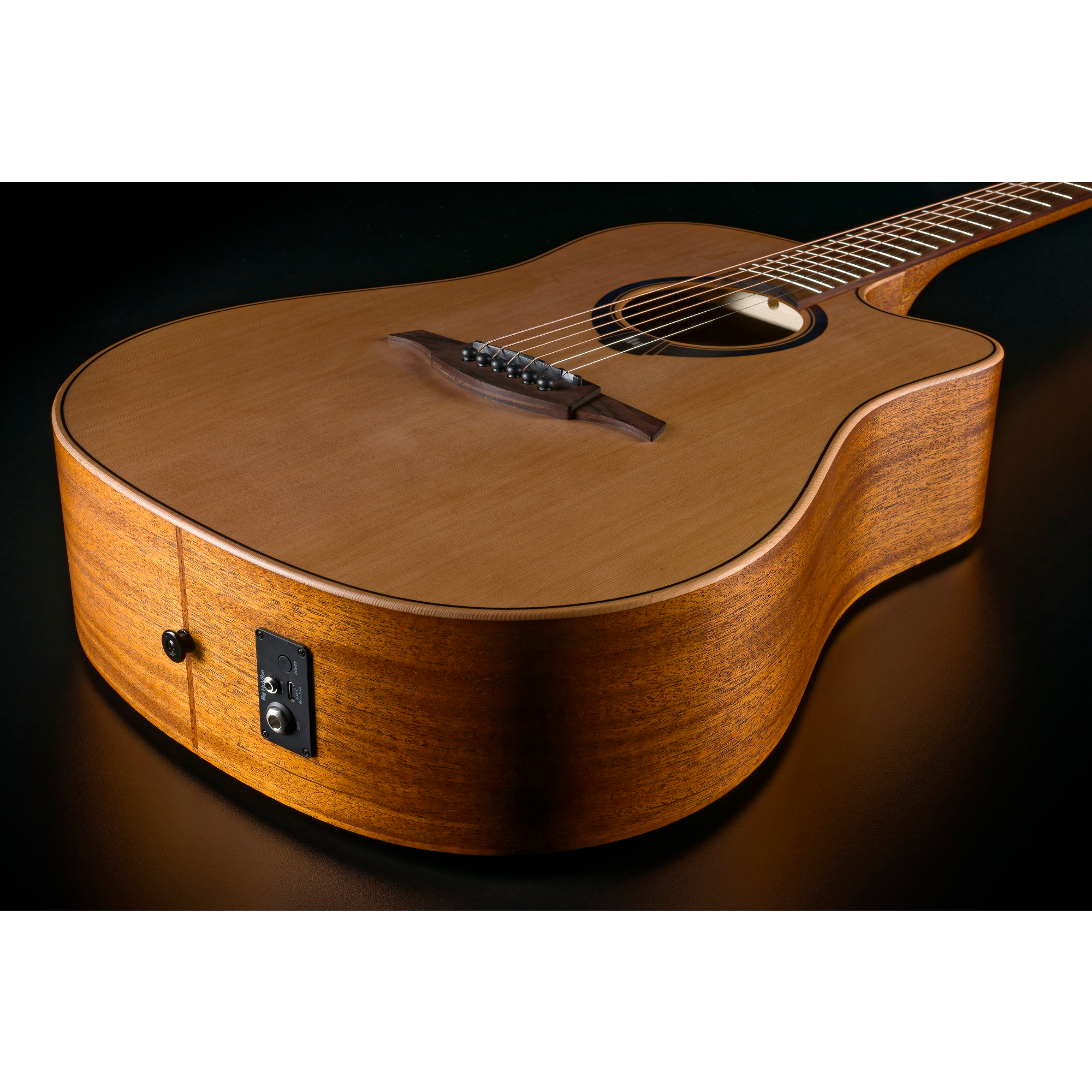 La HV10DCE réunit la présence puissante de la forme Dreadnought avec le préampli révolutionnaire HyVibe H2. Sa table en cèdre rouge massif ainsi que le fond et les éclisses en Khaya produisent un son chaud et résonant avec une projection impressionnante - parfait pour le strumming énergique et les performances dynamiques. La finition satinée met en valeur l'esthétique naturelle, tandis que la touche Brown Brankowood respectueuse de l'environnement et le chevalet assurent un confort de jeu agréable et une grande durabilité. Grâce au design cutaway, les frettes supérieures sont accessibles sans effort, faisant de cette Dreadnought un compagnon polyvalent pour tous les styles de jeu.