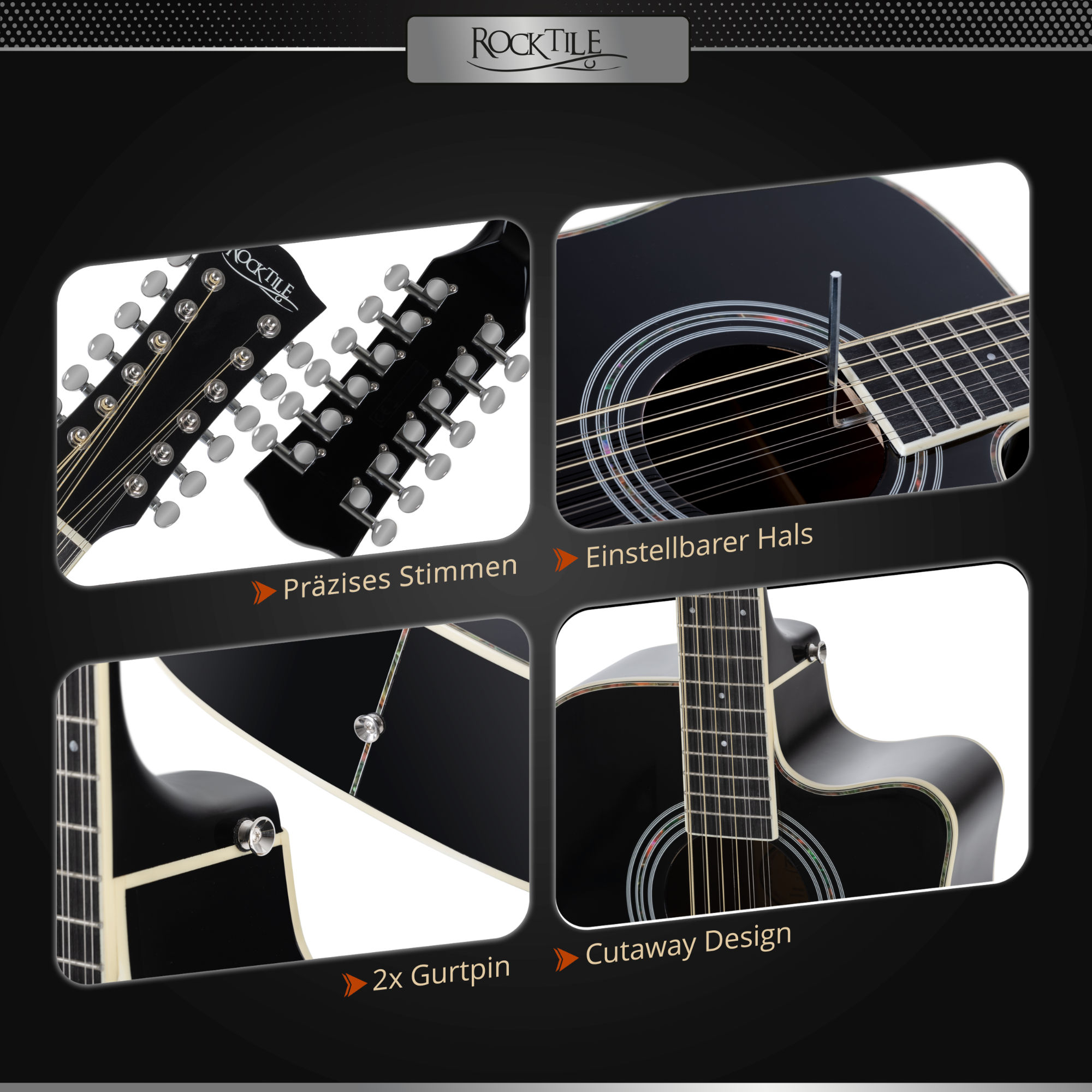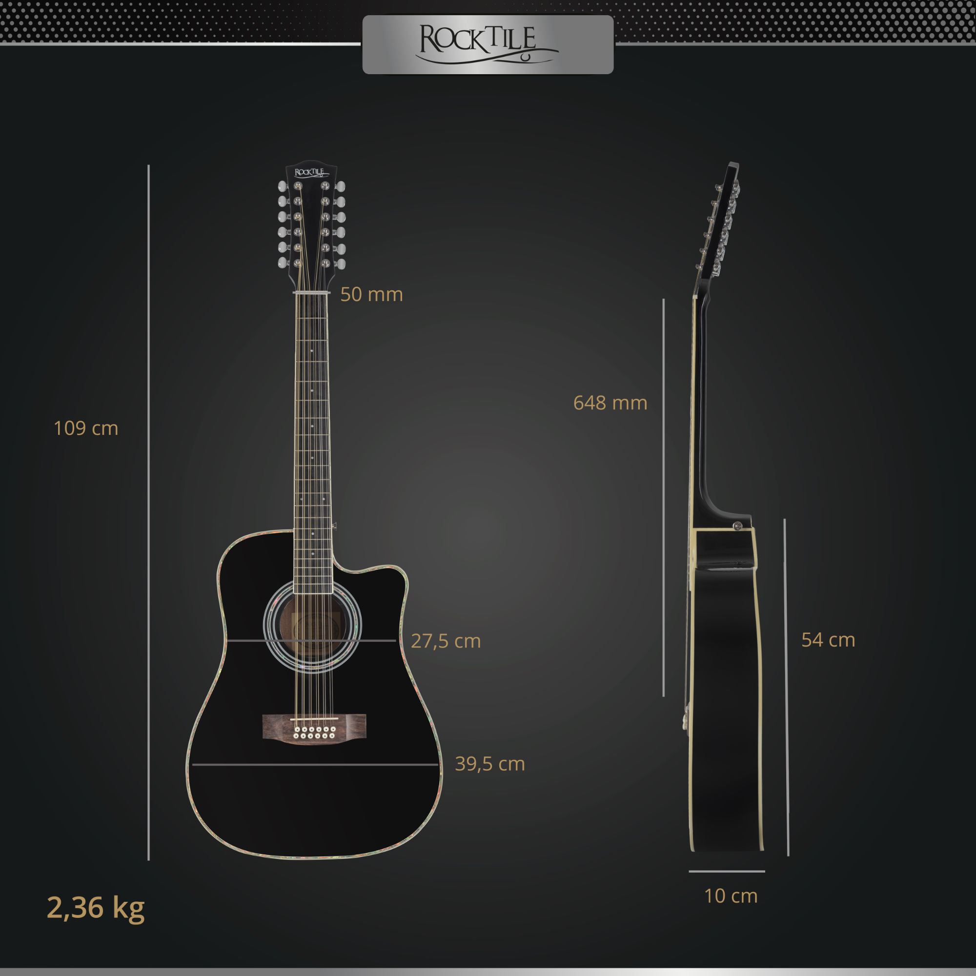 Découvrez maintenant le son plein de la Rocktile WSD12-50C et appréciez la sensation unique d’une véritable 12-cordes !