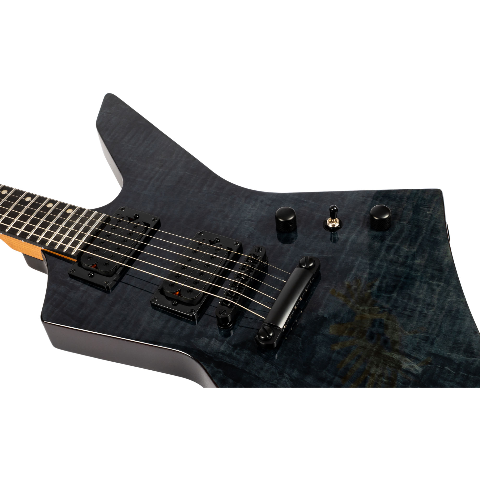 Un jeu de deux Spira Villain High-Output Humbuckers délivre beaucoup de puissance, des basses serrées et des aigus définis. Même sous forte distorsion, ton timbre reste clair, les palm mutes sont secs et directs, et les phrases monophoniques conservent leur focus. Le tout est piloté par un sélecteur 3 positions ainsi qu'un réglage de volume et un réglage de tone.