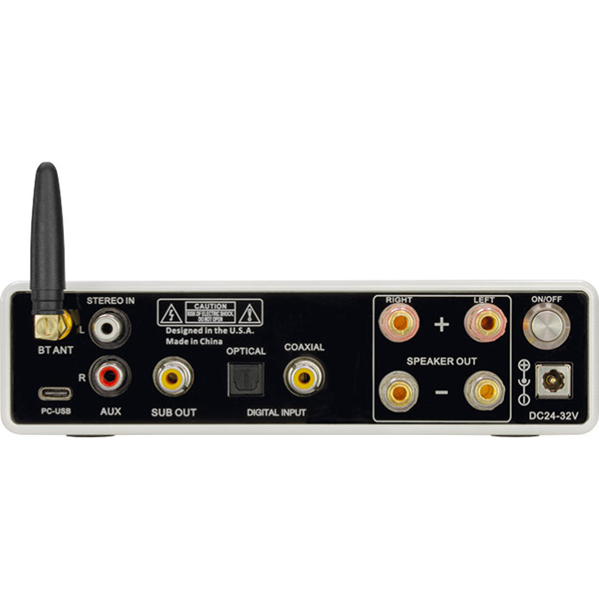 Enveloppé dans un boîtier entièrement en aluminium au design élégant et ultra-moderne, l'amplificateur délivre 200 W et s'intègre parfaitement à tout intérieur. Il est en outre livré avec une télécommande pour les fonctions principales telles que le volume, les réglages de basses et d'aigus, ainsi que la sélection des sources.