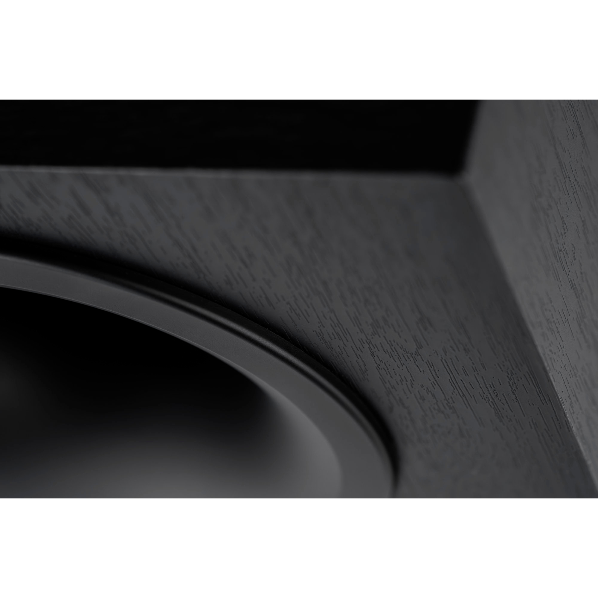 - Finition du caisson : vinyle frêne noir, façade en vinyle noir satiné