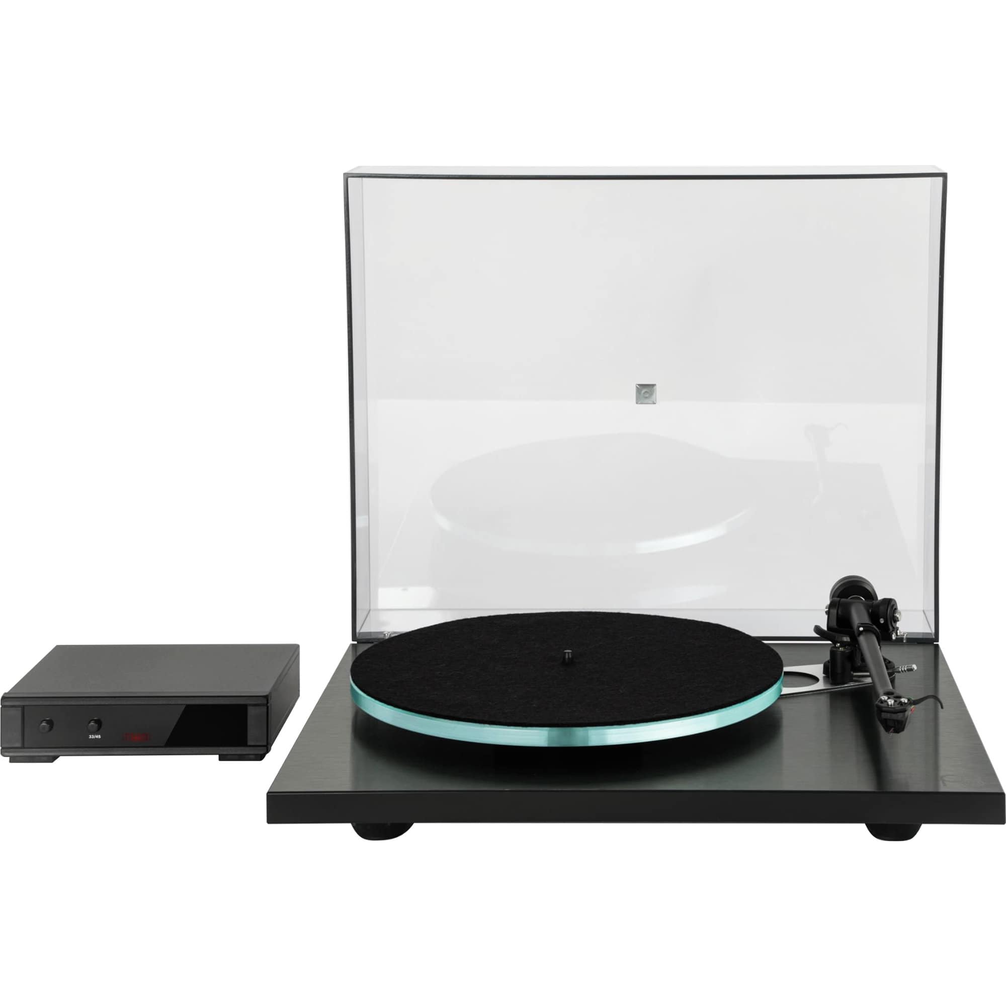 Grâce au bloc d'alimentation externe Neo PSU Mk2, vous pouvez changer la vitesse d'un simple bouton de 33 à 45 tr/min — sans changer manuellement la courroie. Le plateau en verre aux bords polis et le capot teinté complètent l'aspect haut de gamme et permettent à la platine de s'intégrer harmonieusement à votre installation Hi-Fi.