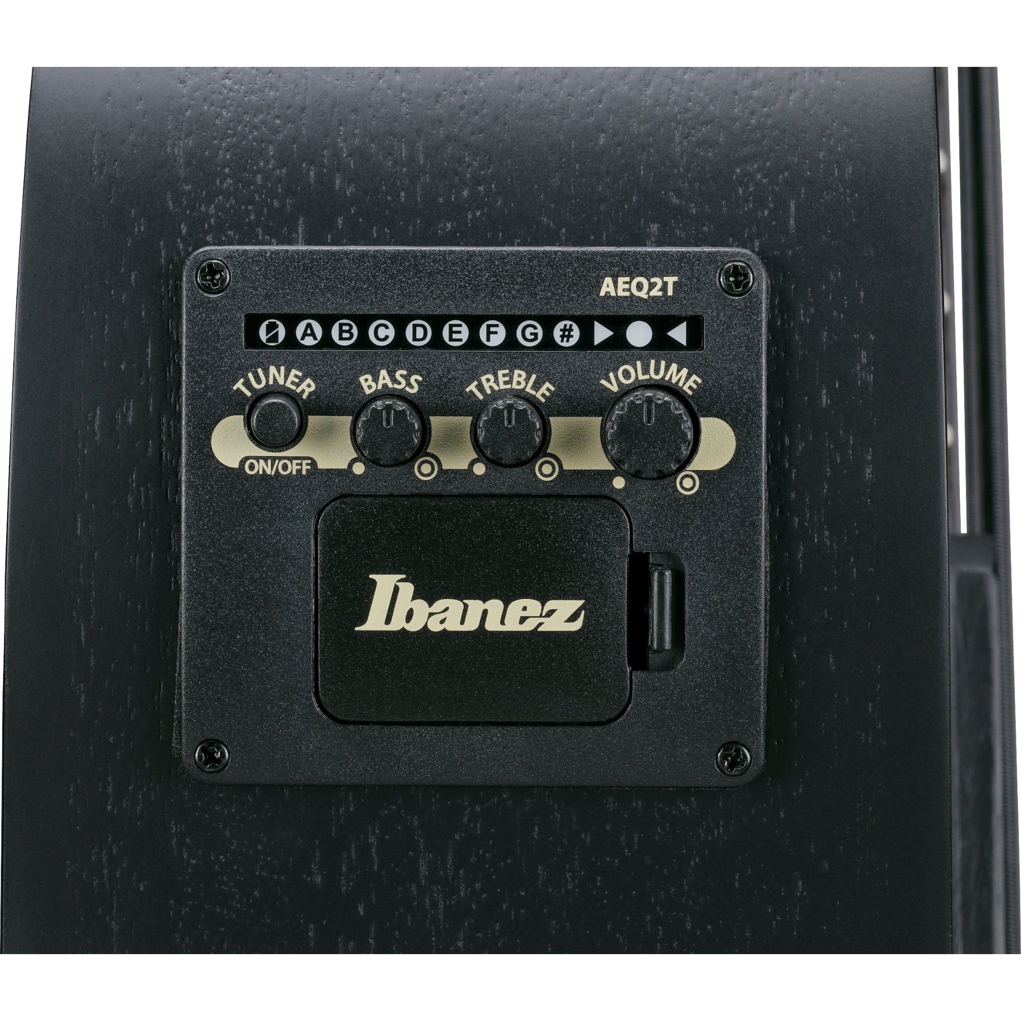 - Capteur: Ibanez Undersaddle, préampli Ibanez AEQ-2T (contrôles: Volume, Basses, Aigus)