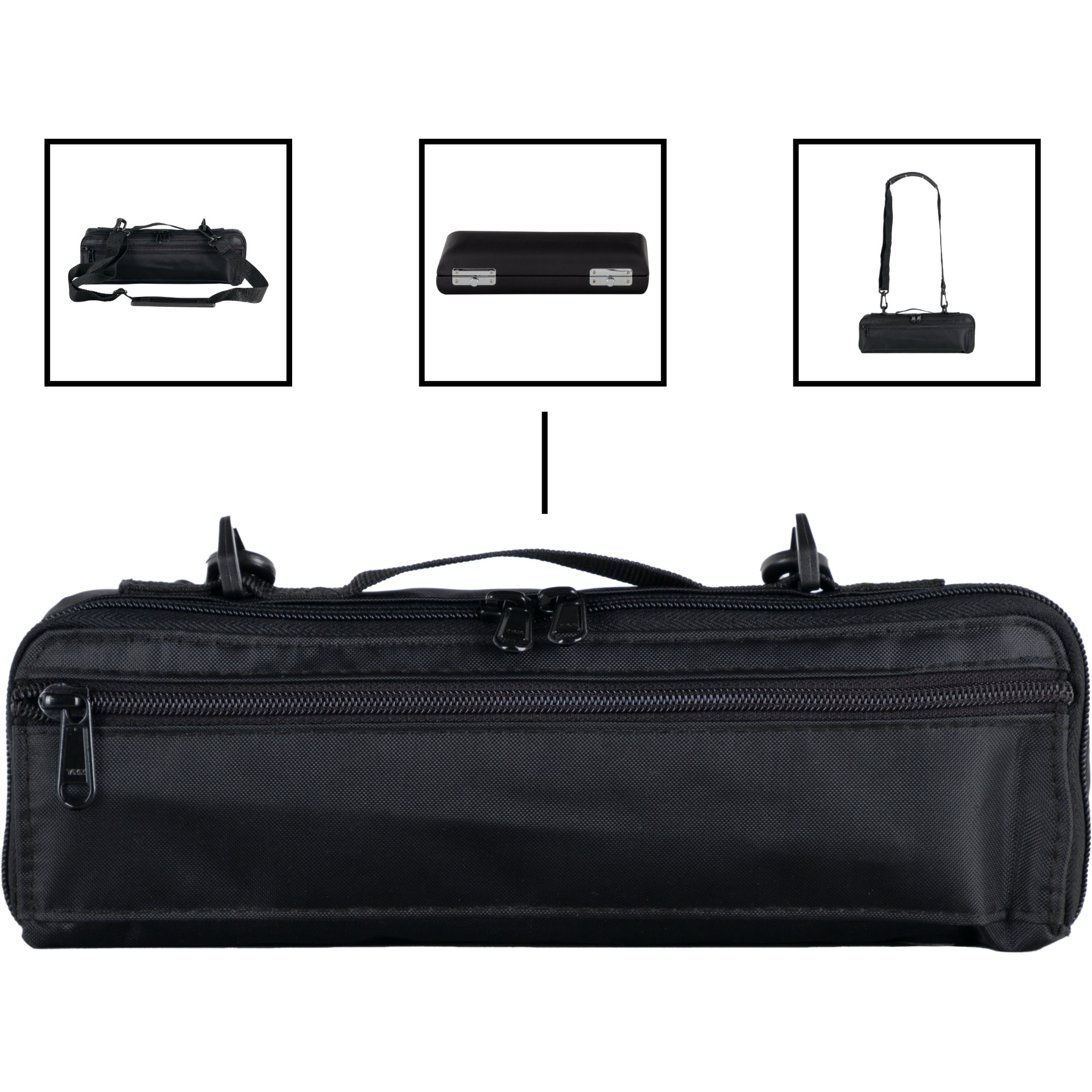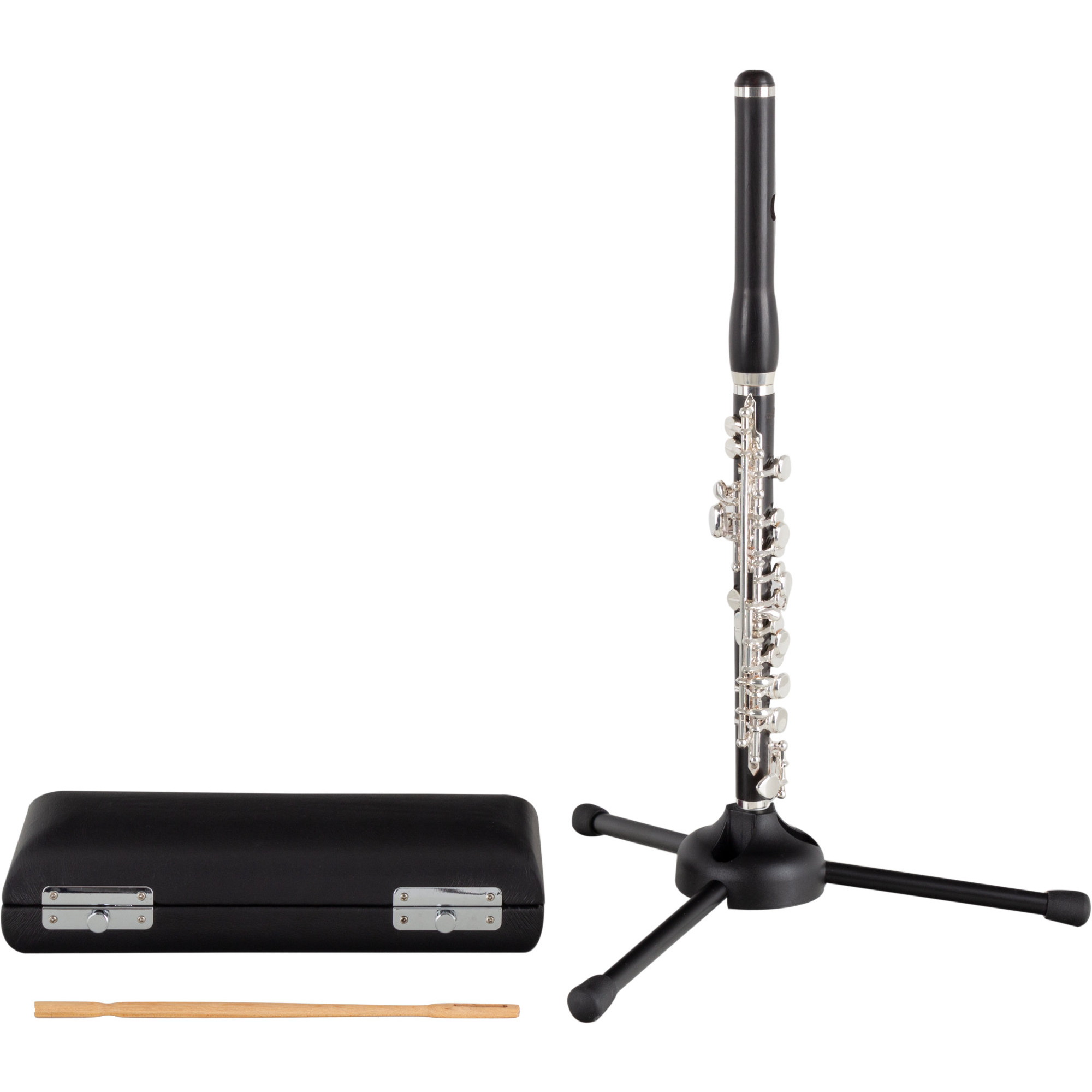 Jedes Instrument wird mit einem hochwertigen Kunstleder-Etui geliefert, in welchem die Einzelteile passgenau Platz finden. Für den Transport zum Unterricht, in die Probe und zum Auftritt steht eine großzügig gepolsterte Tragetasche mit Schultergurt zur Verfügung. Deren Gurt kann in der Länge verstellt oder sogar komplett entfernt werden. Der Wischerstab aus Holz ermöglicht die tägliche Reinigung der Flöte und rundet das Gesamtpaket sinnvoll ab.