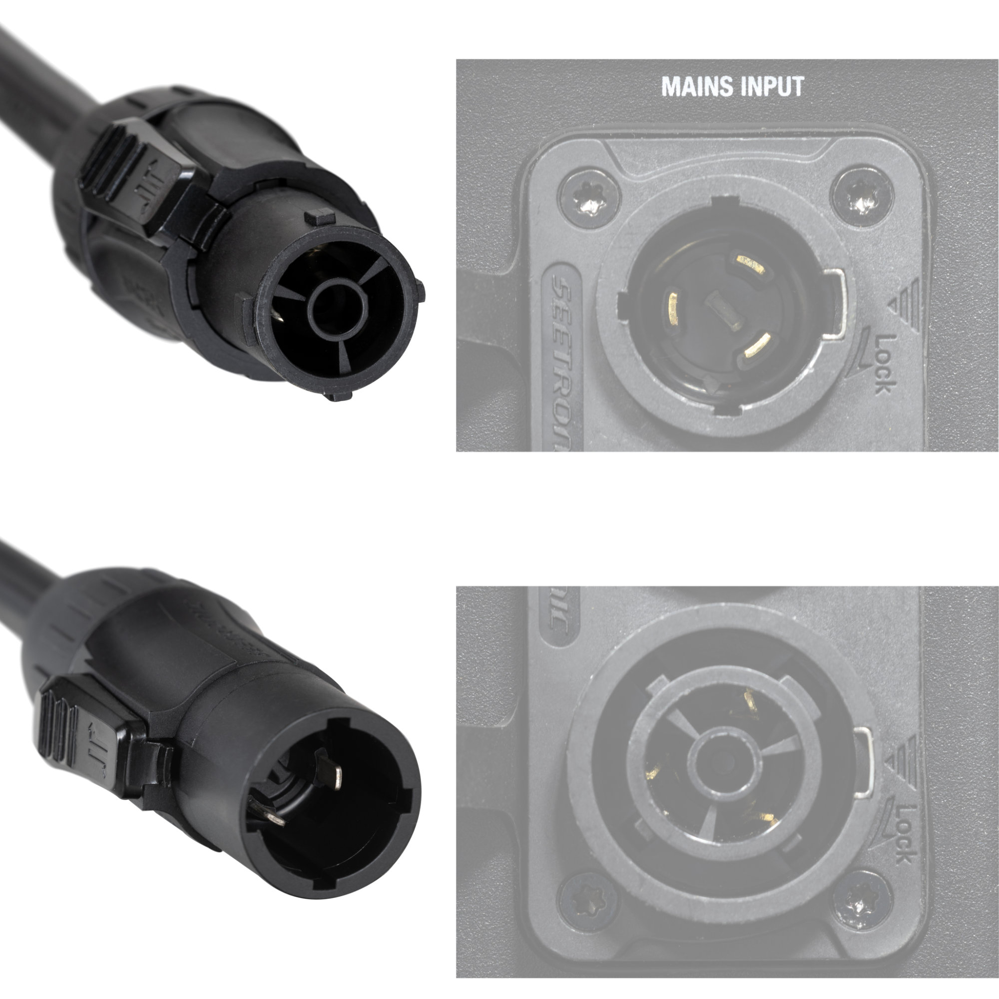 - Connecteur 1 : Seetronic Power Twist TR1 mâle (compatible PowerCon True 1)