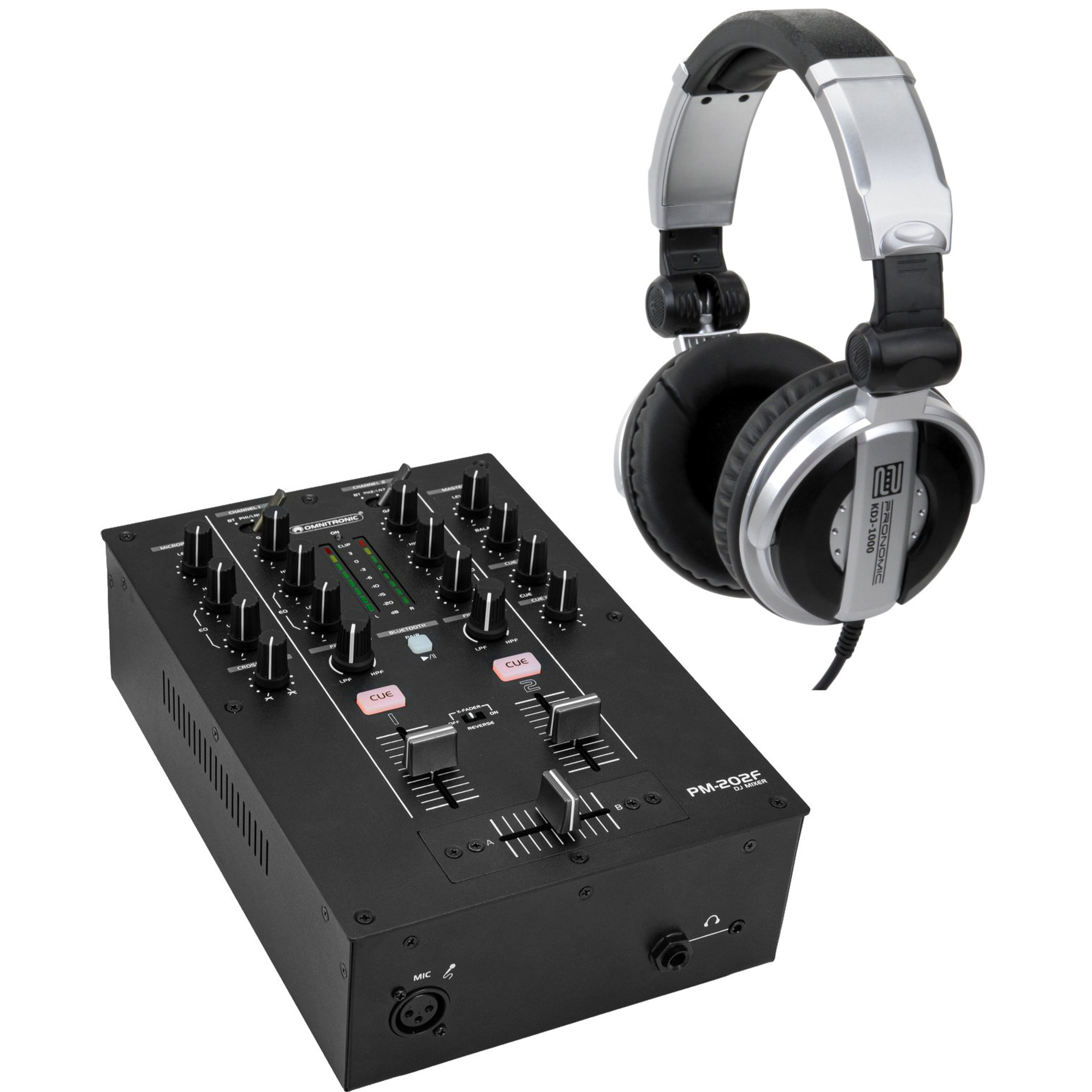 L’Omnitronic PM-202F est un mixeur DJ compact à 2 canaux qui combine la connectivité Bluetooth moderne avec des fonctions DJ classiques. Grâce à ses filtres sonores bipolaires et ses nombreuses options de connexion, il t’offre flexibilité et créativité pour tes sets DJ. Le casque dynamique Pronomic KDJ-1000, inclus, allie puissance sonore extrême et fonctionnalités pratiques.