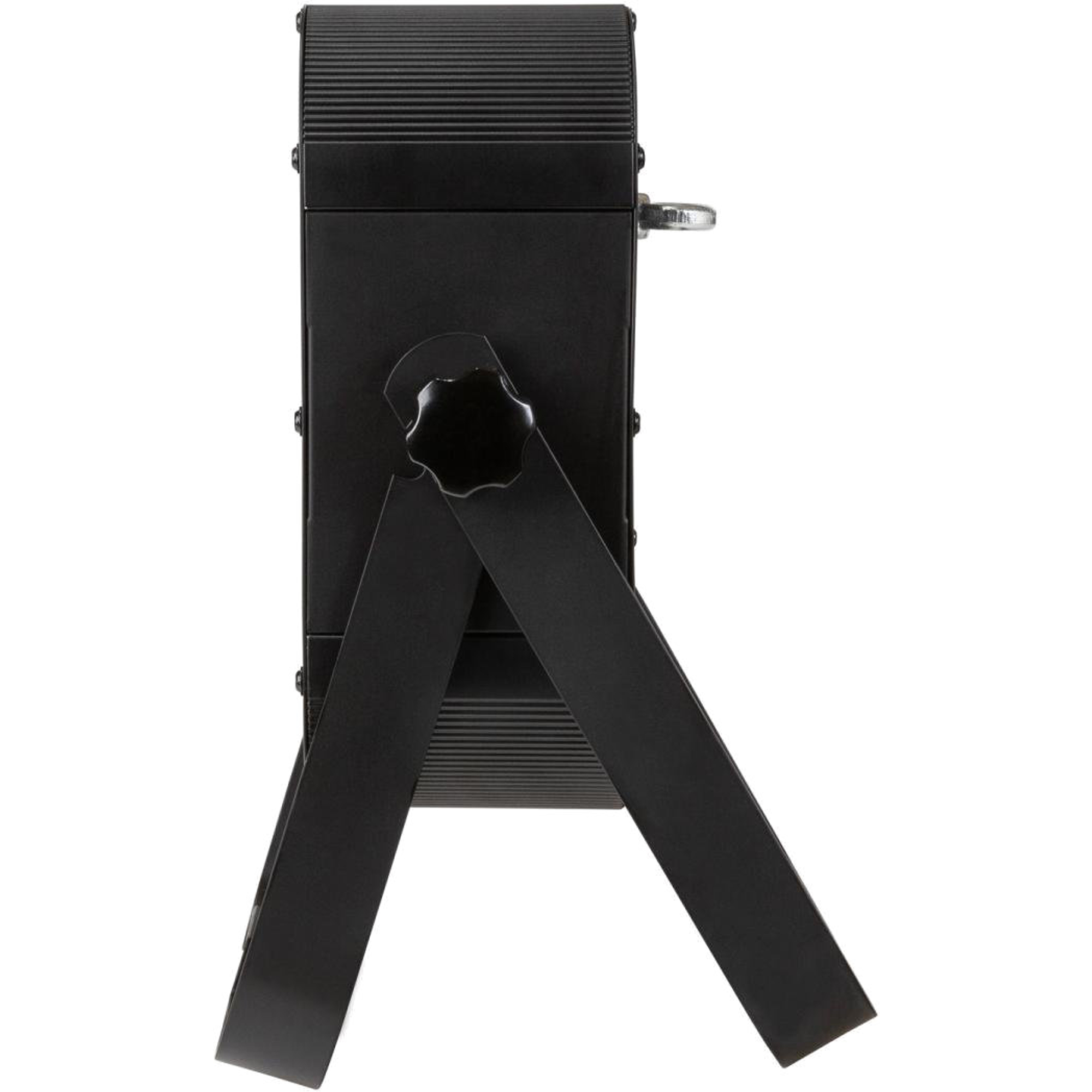 Grâce au boîtier plat, aux supports de montage doubles et aux entrées/sorties latérales pour l'alimentation et le DMX, vous pouvez placer l'appareil au sol ou le fixer sur des traverses ou des trépieds. Le refroidissement par convection assure un fonctionnement totalement silencieux — parfait pour petites scènes, studios ou installations.
