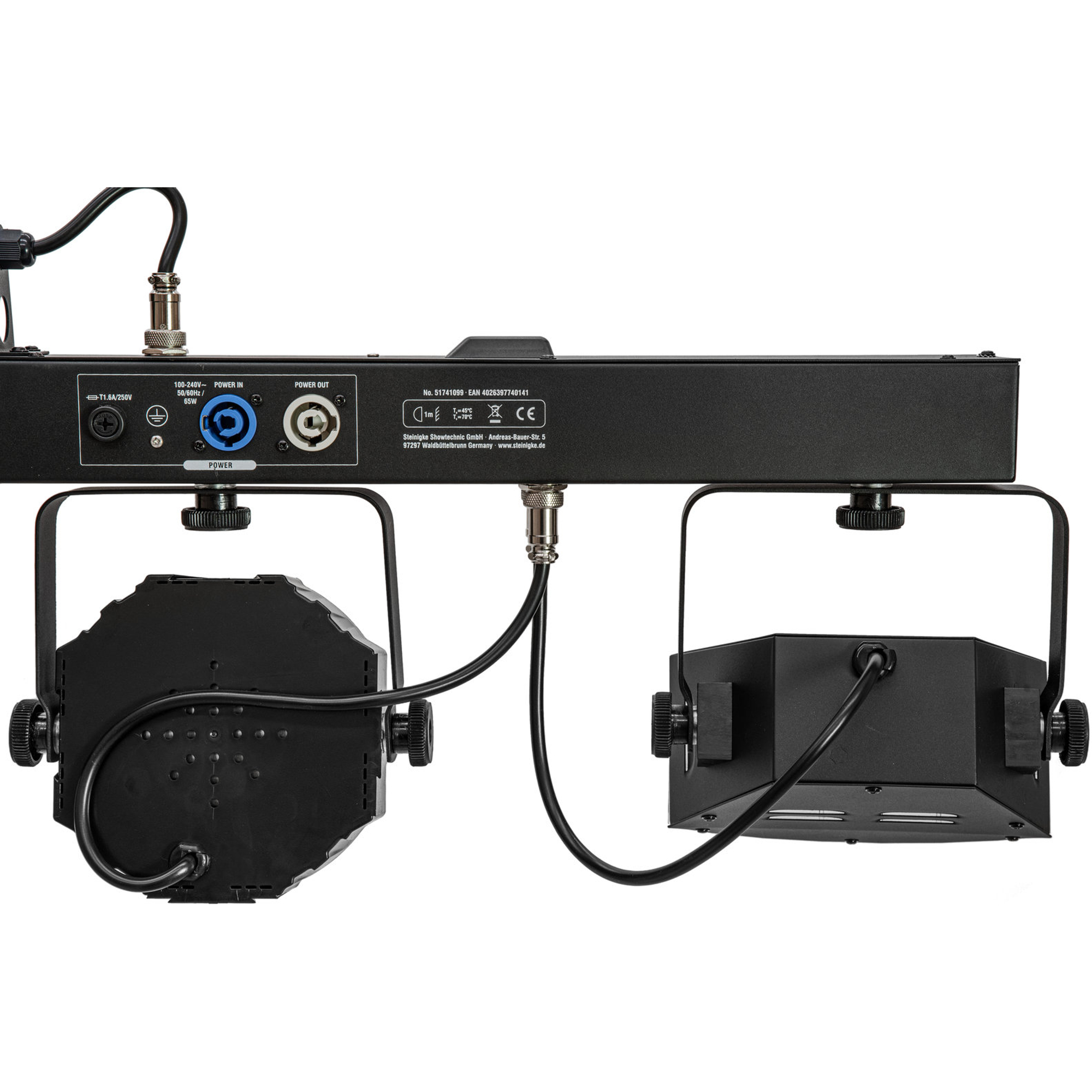 Le set lumière Eurolite est un poids plume, idéal pour une utilisation mobile. Il est livré préassemblé dans un sac de transport pratique. Le support de montage pivotant intégré est conçu pour fixation sur structure. La technologie d’alimentation est prévue pour une tension secteur entre 100 et 240 volts. De plus, une sortie en daisy chain permet d’alimenter jusqu’à 8 appareils – parfait pour les gros projets.