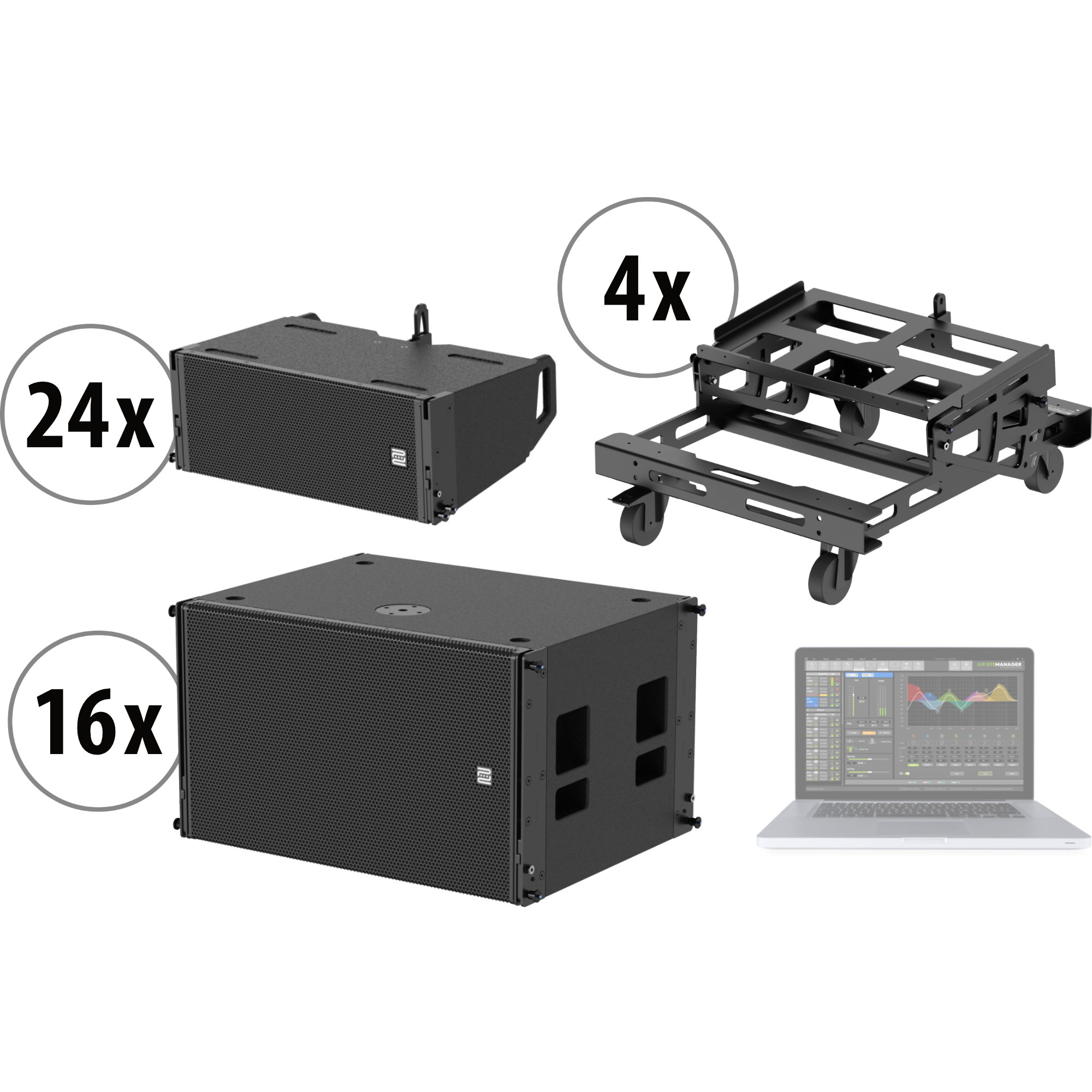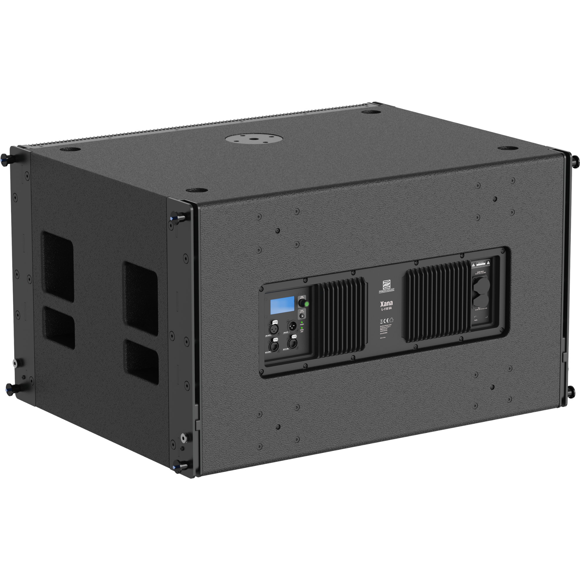Grâce au contrôle DSP intégré et à la télécommande optionnelle via RS485, tu maîtrises tous les paramètres influant sur le son. Niveaux, delay, EQ et des fonctions spéciales comme le réglage cardioïde des basses se règlent aisément sur l'appareil ou depuis la régie. L'écran LCD clair et le logiciel Pronomic P.sysManager optimisent les flux de travail et assurent un réglage précis du son - même sous pression.