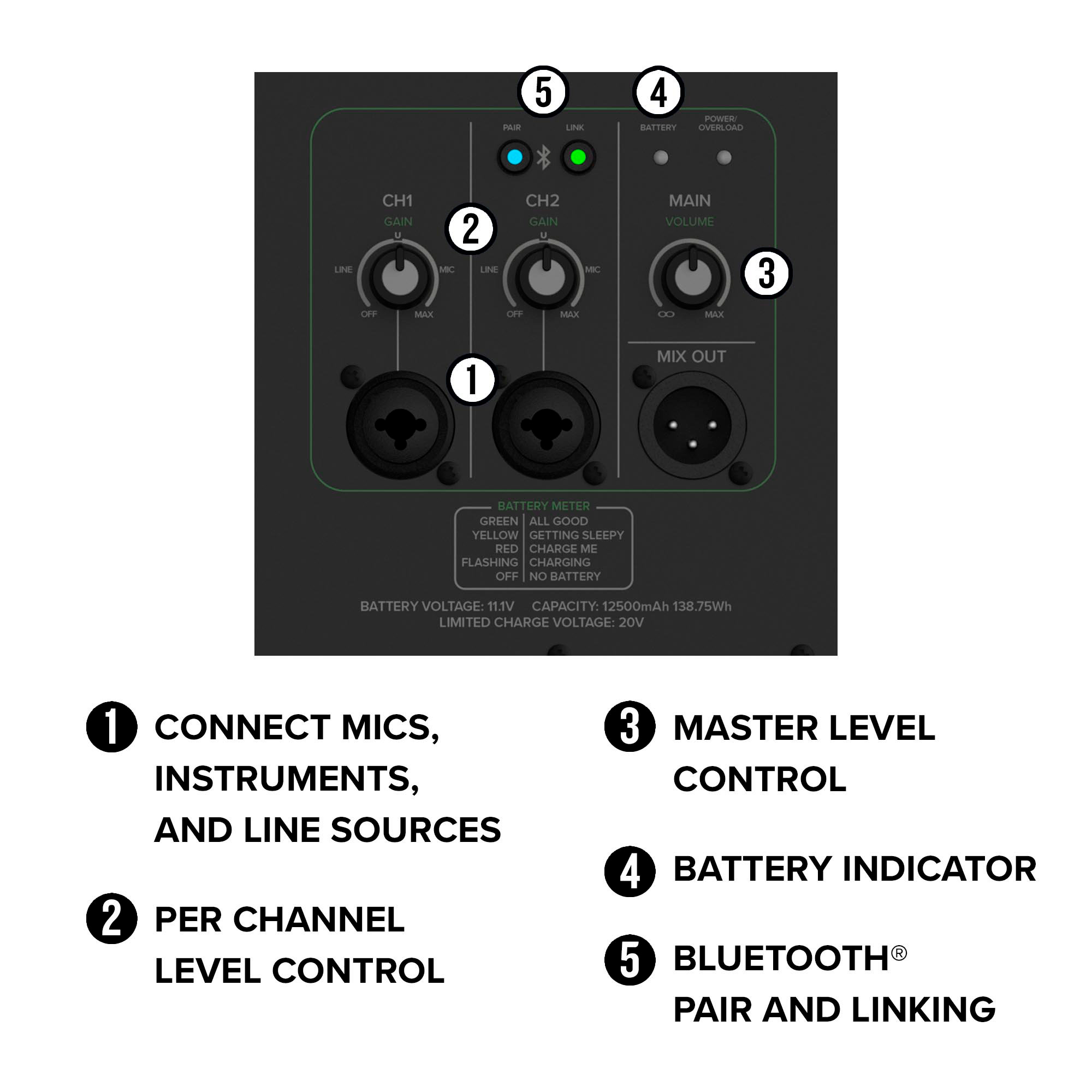 Thrash212 GO liefert dank eines ultra-effizienten Class-D-Verstärkers und speziell ausgewählter Komponenten selbst im Akkubetrieb die für Mackie typisch druckvolle, saubere und pegelstarke Klangwiedergabe. Mit dem Thrash212 GO bist Du unabhängig vom Stromnetz jederzeit startklar, sei es bei einer Hochzeitsfeier am Strand oder in einem hundert Jahre alten Gebäude mit fragwürdiger Elektrik