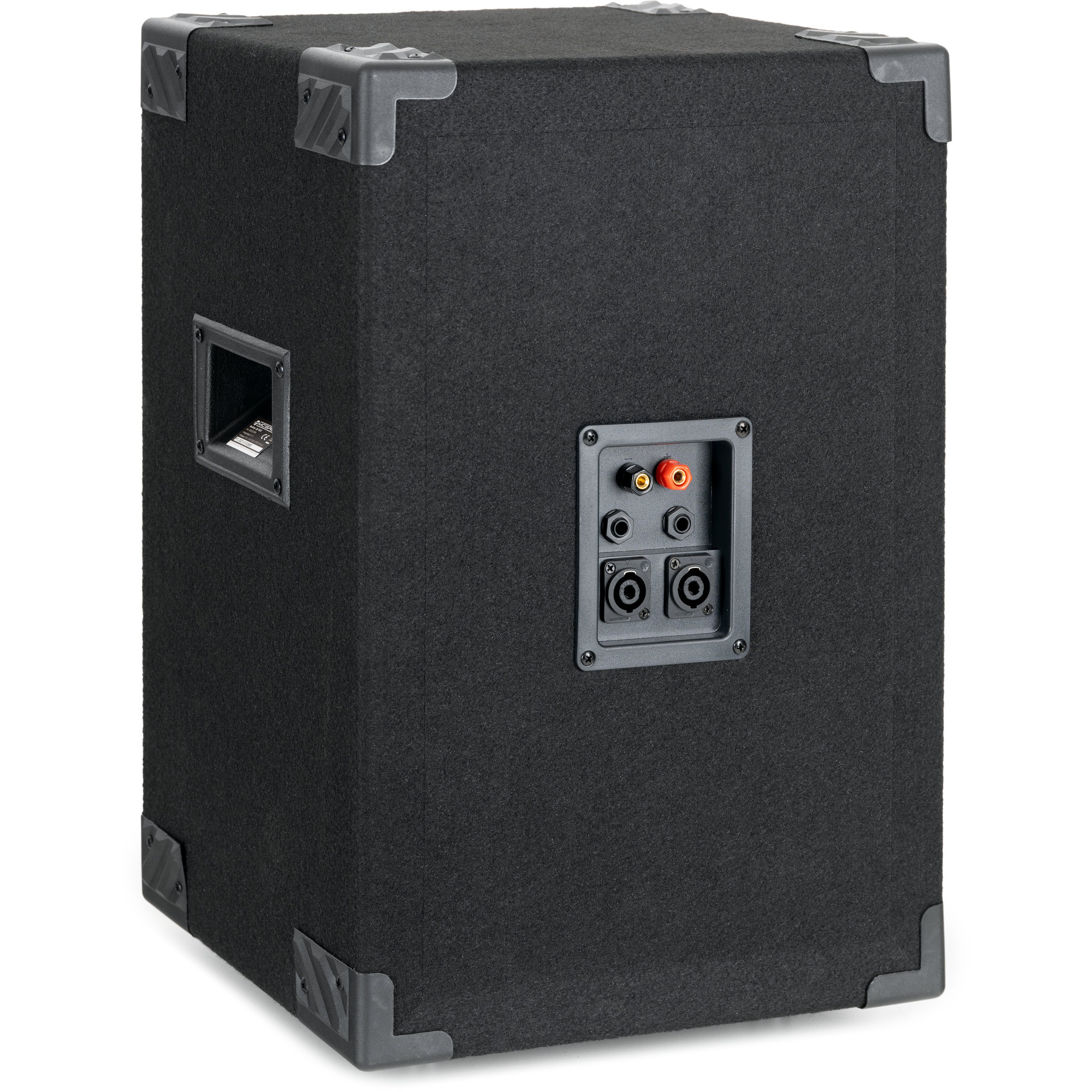 Ein 10" Woofer mit zwei Bassreflex-Rohren sorgt für ordentlich Wums in der Bude. Im Hochtonbereich liefern zwei Piezos messerscharfe, knackige Sounds. Die Anschlüsse sind als Klemmen und Klinke ausgeführt um größtmögliche Flexibilität zu gewährleisten. Somit können die Boxen sowohl an eine PA-Endstufe als auch an einen Hifi-Verstärker angeschlossen werden.