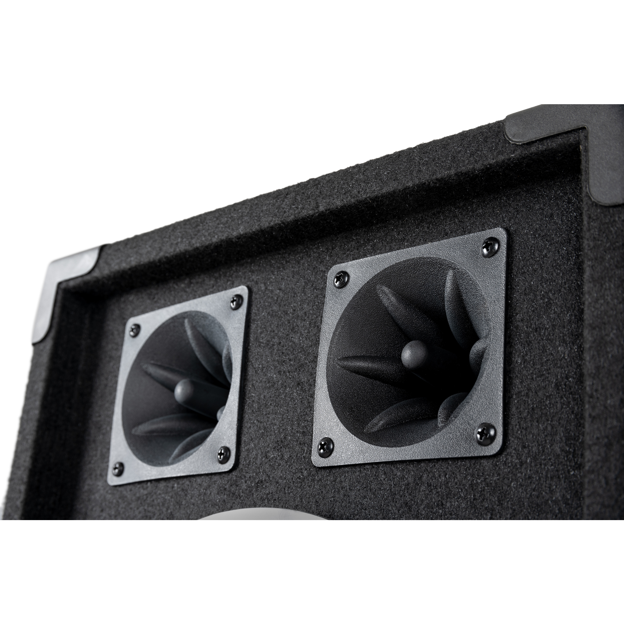- 2-Wege-Box mit 10" (25 cm) Woofer und zwei Piezo-Hochtönern