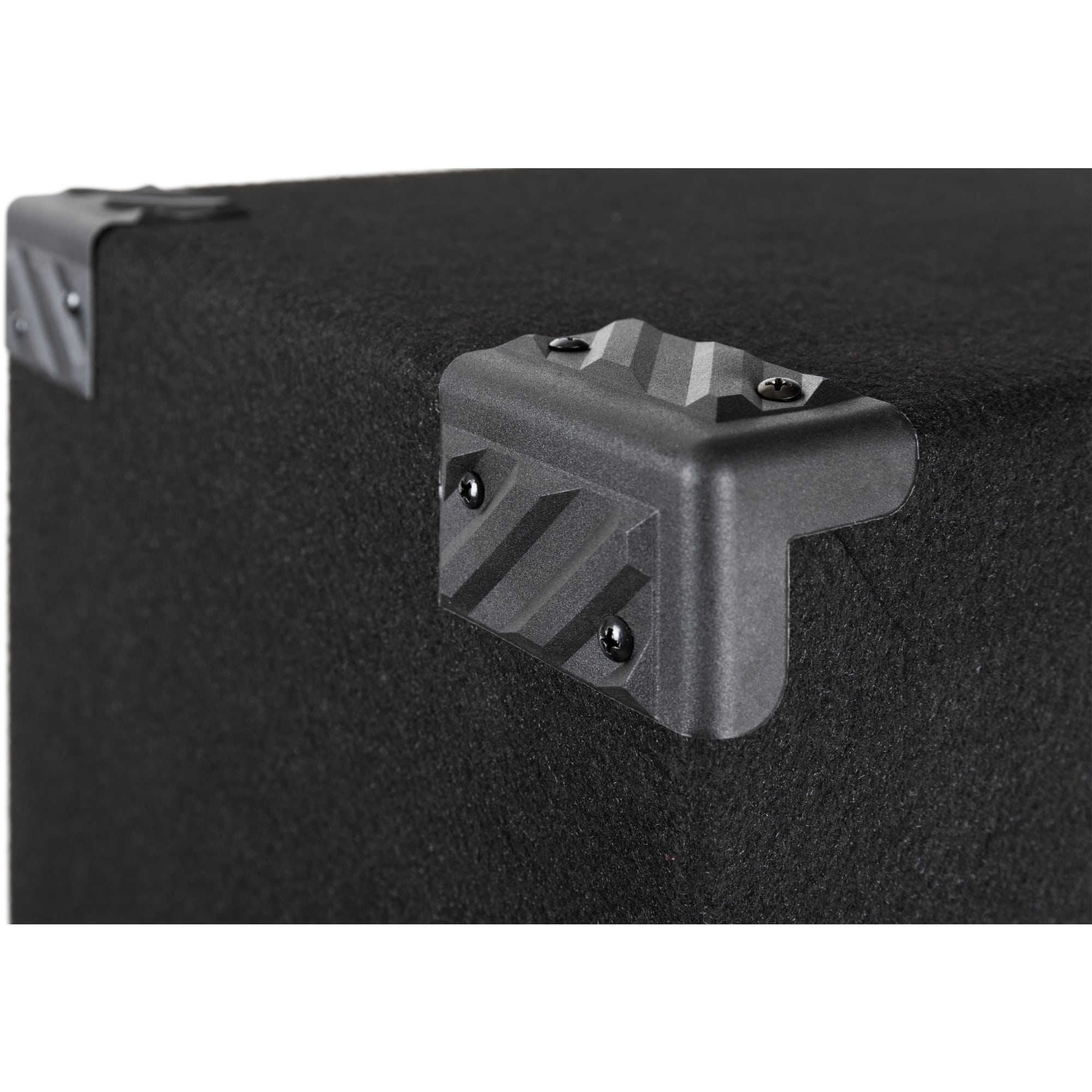 - Robustes Gehäuse mit Schutzecken, Filzoberfläche und Metallgitter