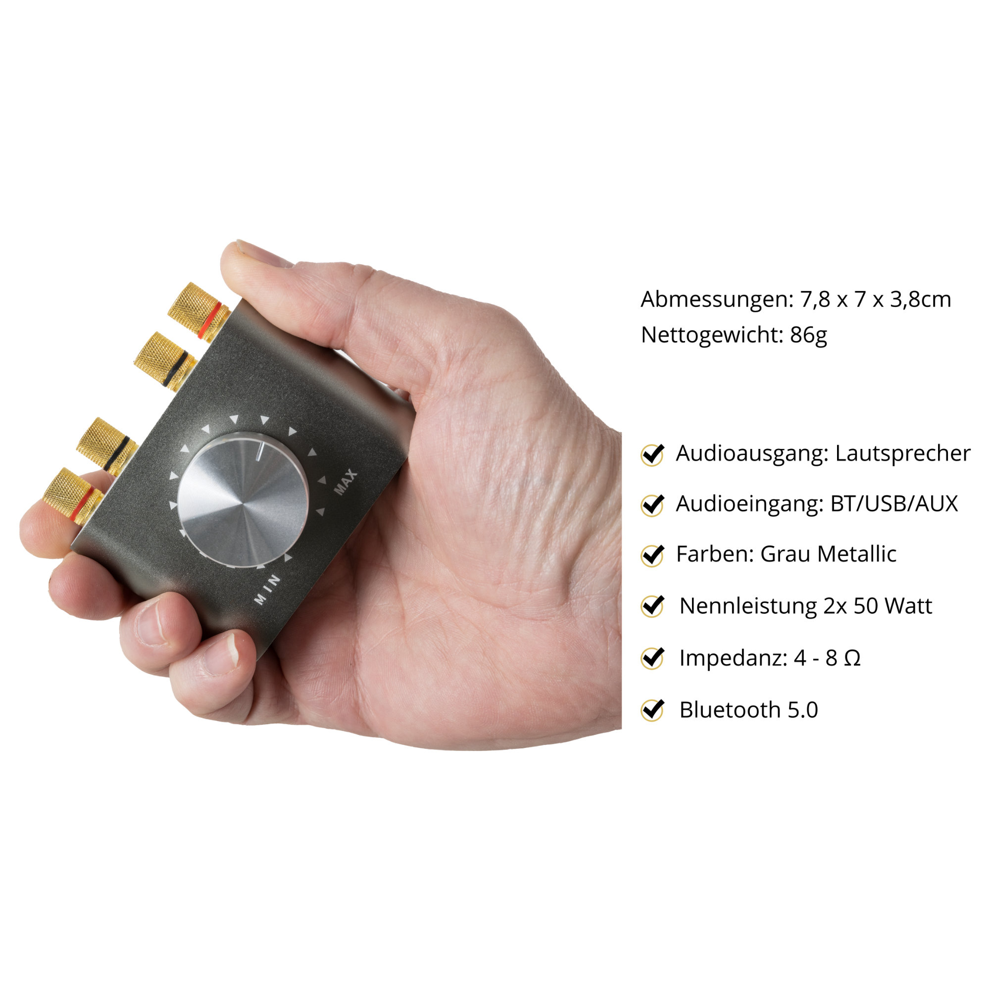 Le MAMP-250BT de McGrey s'utilise partout où l'espace réduit et la flexibilité sont demandés. Avec 2x 50 W de puissance dans un boîtier en aluminium solide, il s'intègre parfaitement — que ce soit dans le salon ou au poste de travail.