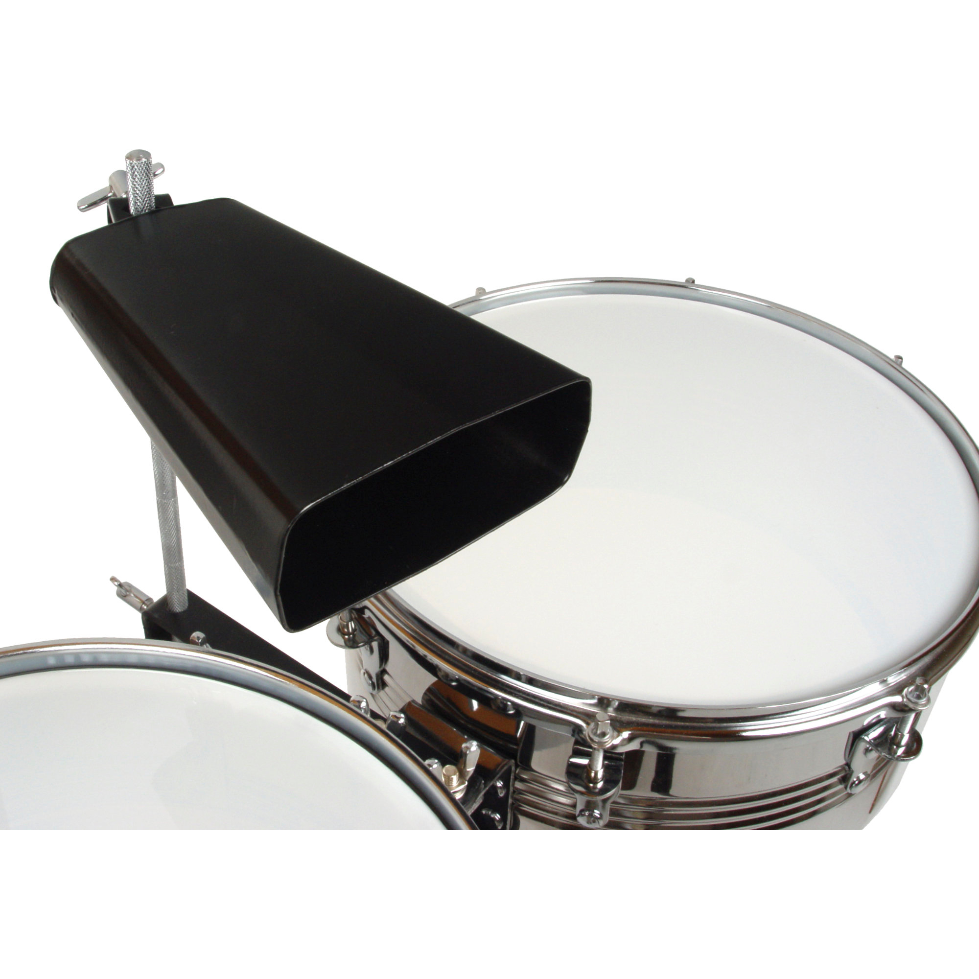 Mitgeliefert wird eine Cowbell (Kuhglocke), welche justierbar zwischen den beiden Kesseln befestigt wird. Volle Töne werden durch Schlagen auf das untere Ende der Glocke (an der Öffnung) erzeugt. Akzente und Obertöne erzeugt man mit dem Schlagen des oberen Bereiches der Glocke.Durch das mitgelieferte Dämpferset kann der Klang noch nach Belieben beeinflusst werden.