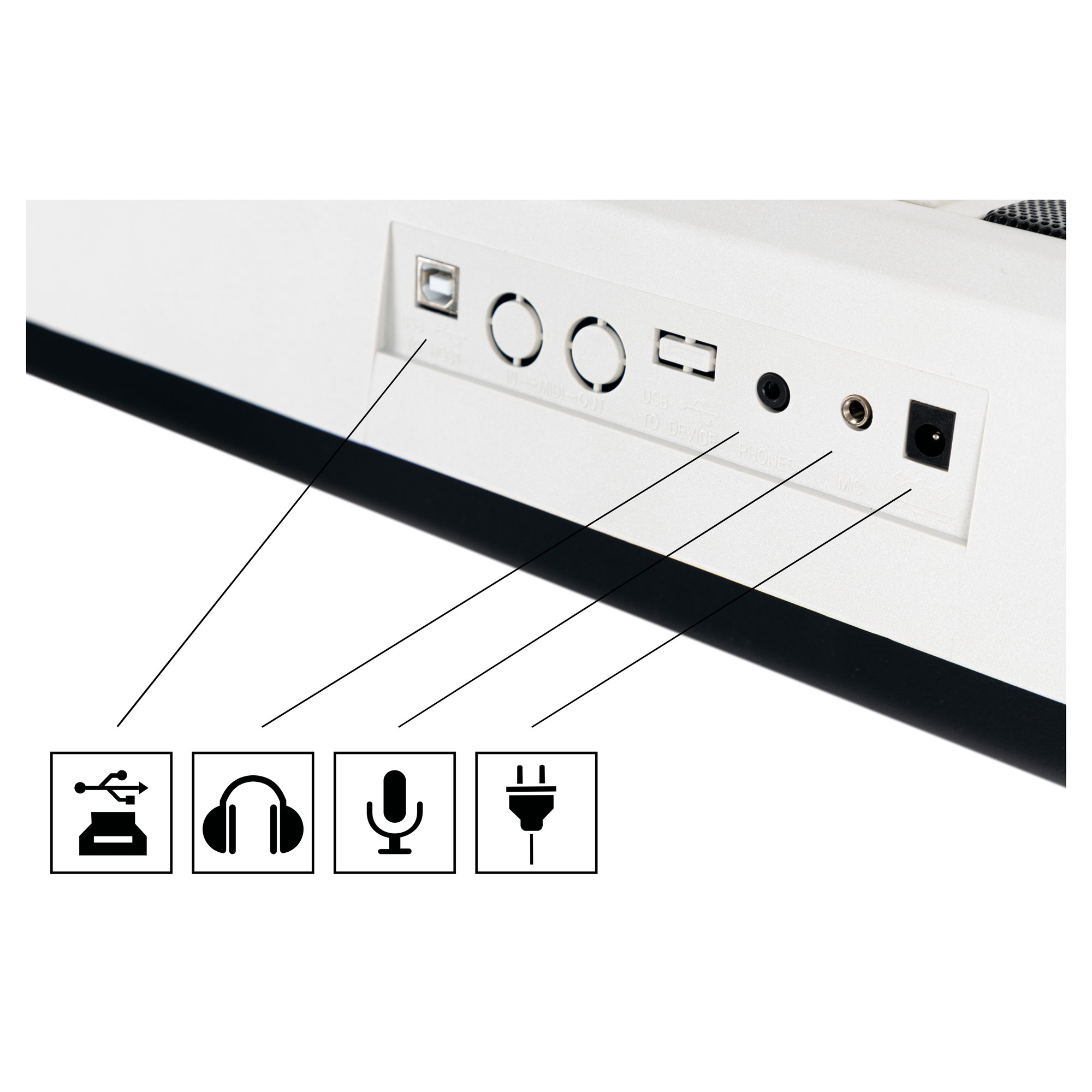 Möchtest Du zu Hause Keyboard spielen, ohne Deine Familie und Nachbarn zu stören, dann schließe einfach Deinen Kopfhörer an das FunKey an. Ein Automatismus deaktiviert zeitgleich die Lautsprecher des Keyboards, sodass Du ohne schlechtes Gewissen üben kannst. Da das FunKey portabel ist und neben dem Netzbetrieb zusätzlich auch reinen Batteriebetrieb erlaubt, kann das Keyboard außerdem leicht auch an andere Rückzugsorte mitgenommen werden.