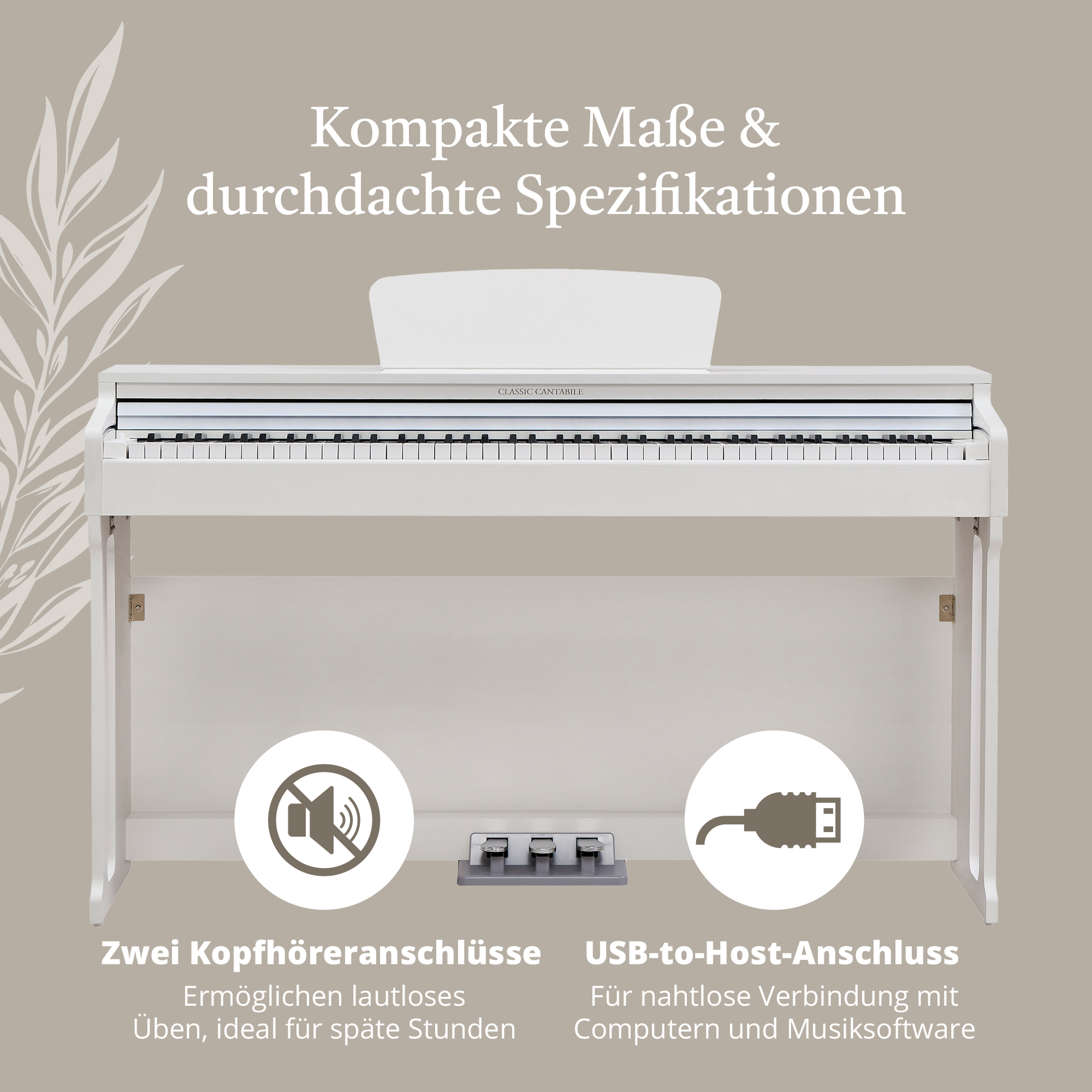 - 1 x Classic Cantabile DP-220 WM E-Piano Weiß matt