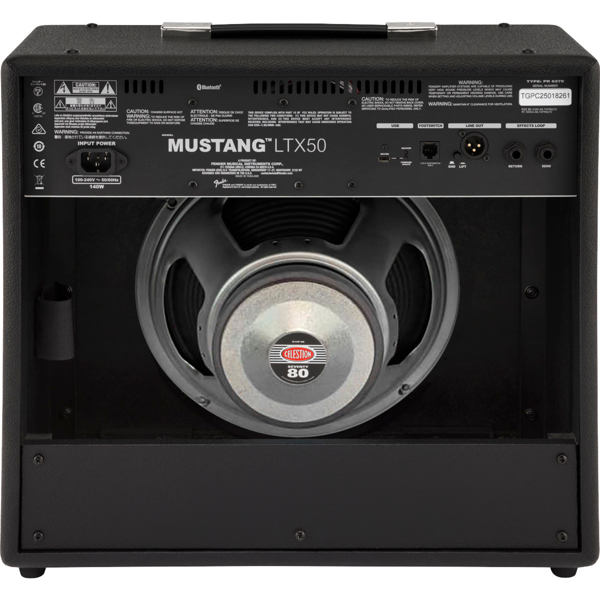 Der Mustang LTX 50 ist mit einem 12-Zoll-Celestion-G12P-80-Lautsprecher und einem optionalen gigtauglichen 5-Tasten-Fußschalter ideal zum Üben oder für Auftritte. Dank integriertem Bluetooth kannst du zu deinen Lieblingssongs jammen sowie mit der Fender TONE-App Presets erstellen, bearbeiten, herunterladen und teilen.