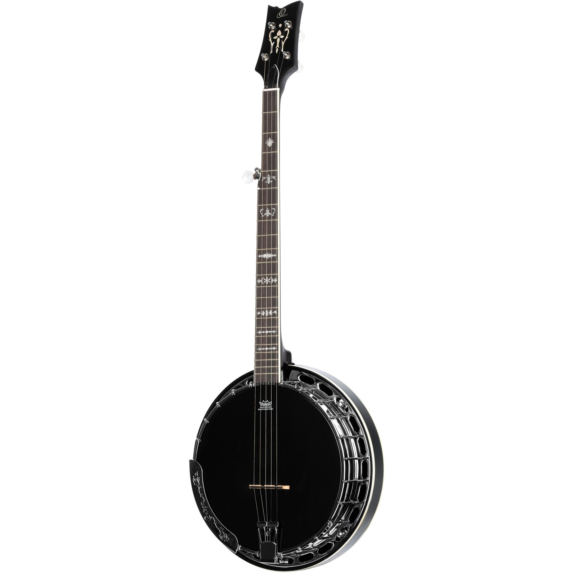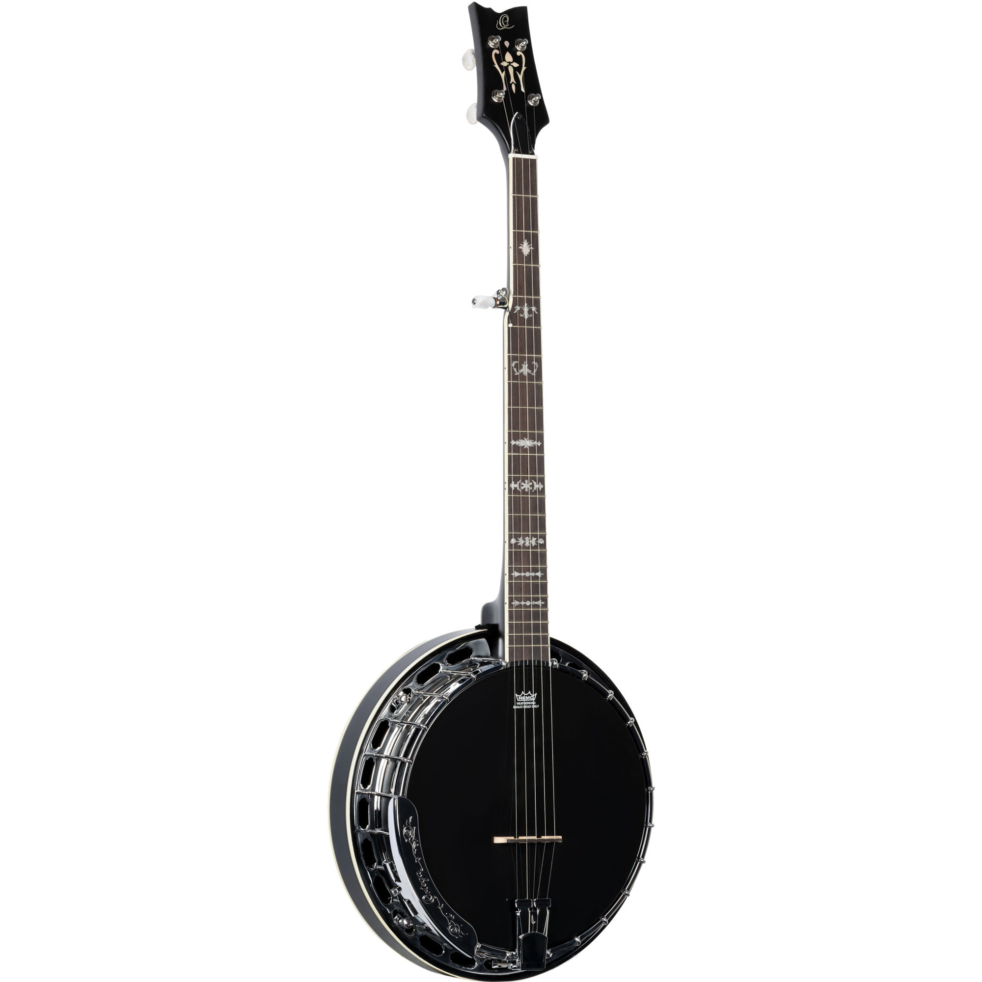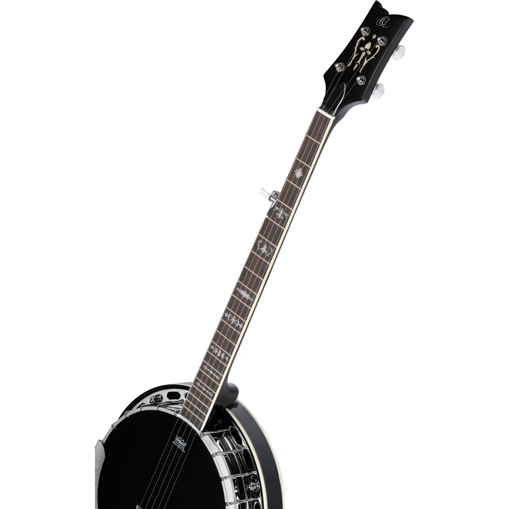 Um sich von der Masse abzuheben, werden alle Ukulelen-Banjos, Gitarren Banjos und Standard 5-Saiter Modelle der Raven-Serie mit einem rabenschwarzen Banjo Fell und moderner Kopfplatte ausgeliefert.