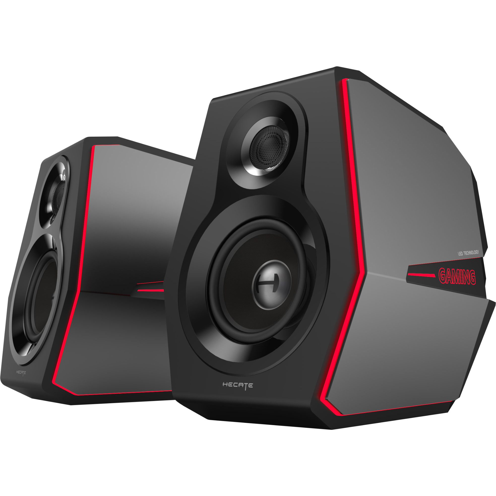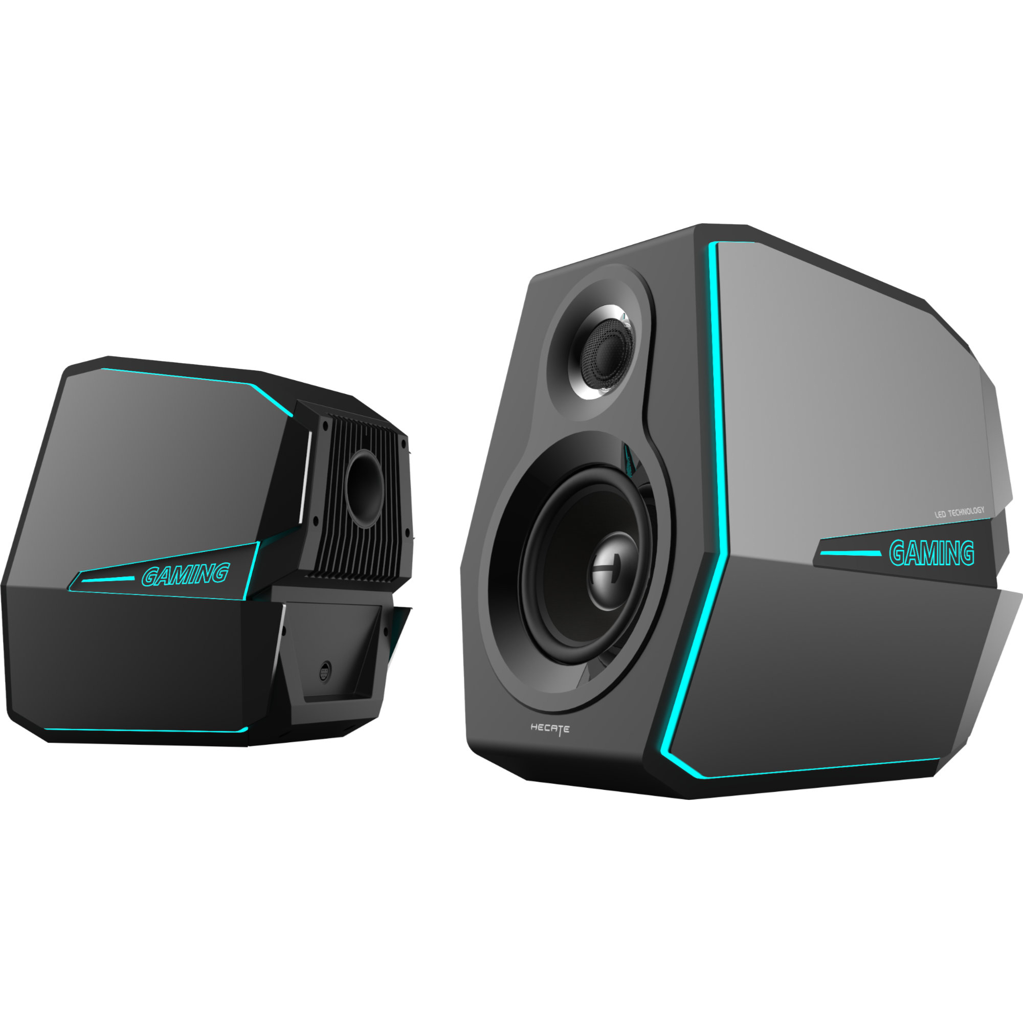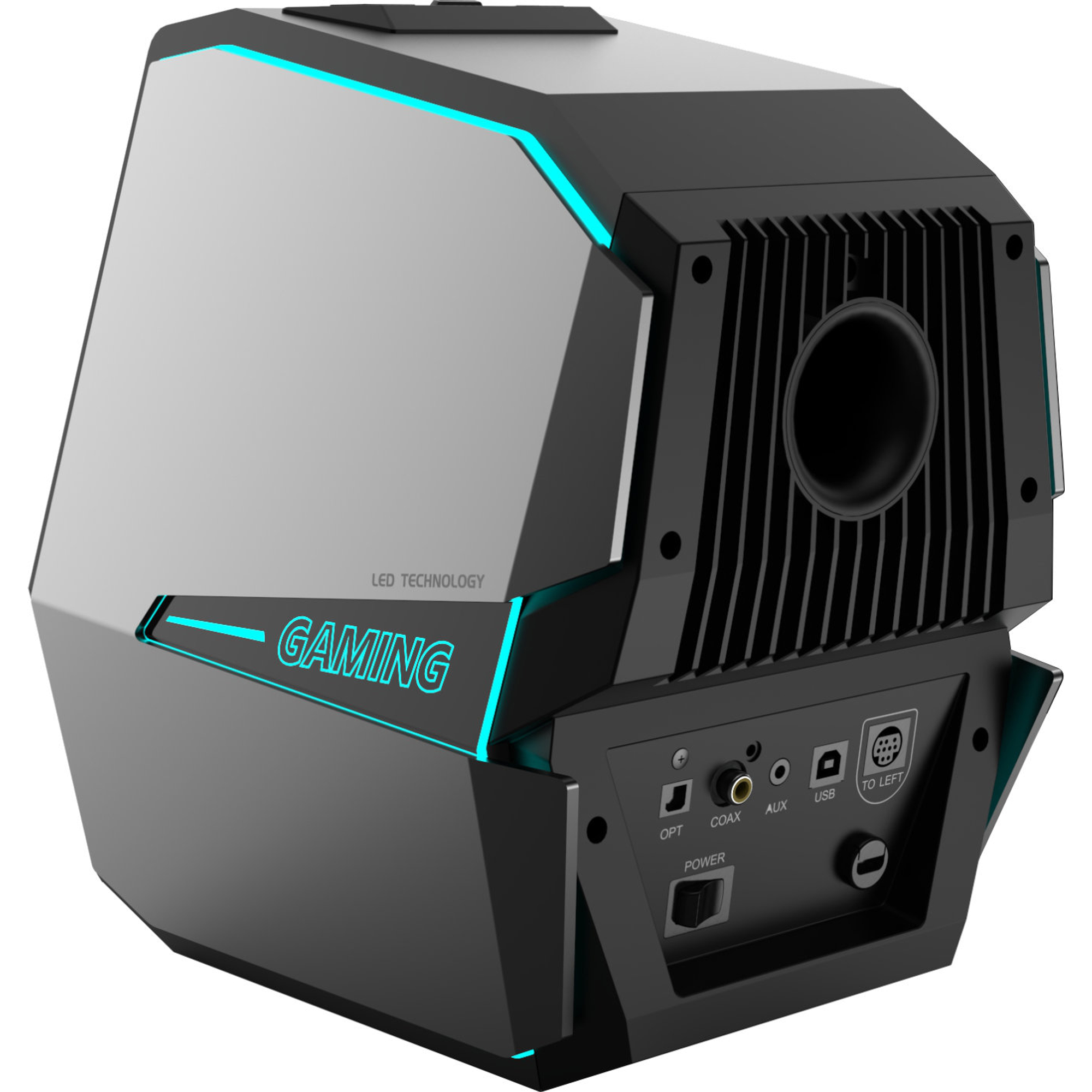 Mit Hilfe der LED am aktiven Lautsprecher lässt sich anzeigen welche Klangeinstellung und Quelle gewählt sind. Das optische Highlight ist neben den ansprechenden Design jedoch das Licht - 11 verschiedene RGB Lichteffekte stehen für eine optimale Gaming-Atmosphäre zur Verfügung. Echtholz-Gehäuse mit Aluminium-Seitenteilen für den perfekten Gaming-Look.