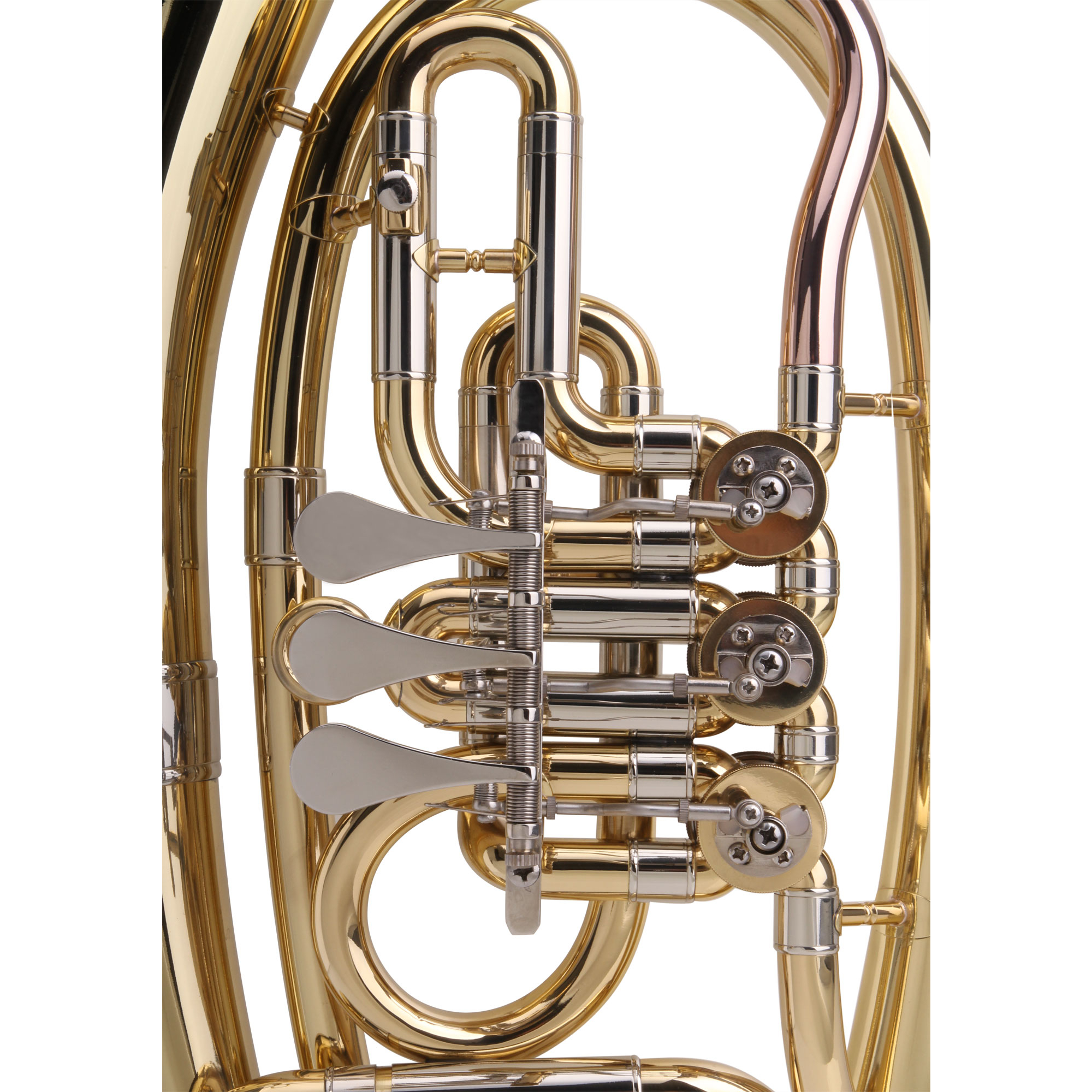 Das TH-38 Tenorhorn in ovaler Bauform besitzt einen Messing-Korpus, Neusilber-Außenzüge, ein Goldmessing-Mundrohr und Messing-Drehventile. Der Schallbecher hat einen Durchmesser von 240 mm, die Bohrung beträgt 14 mm.