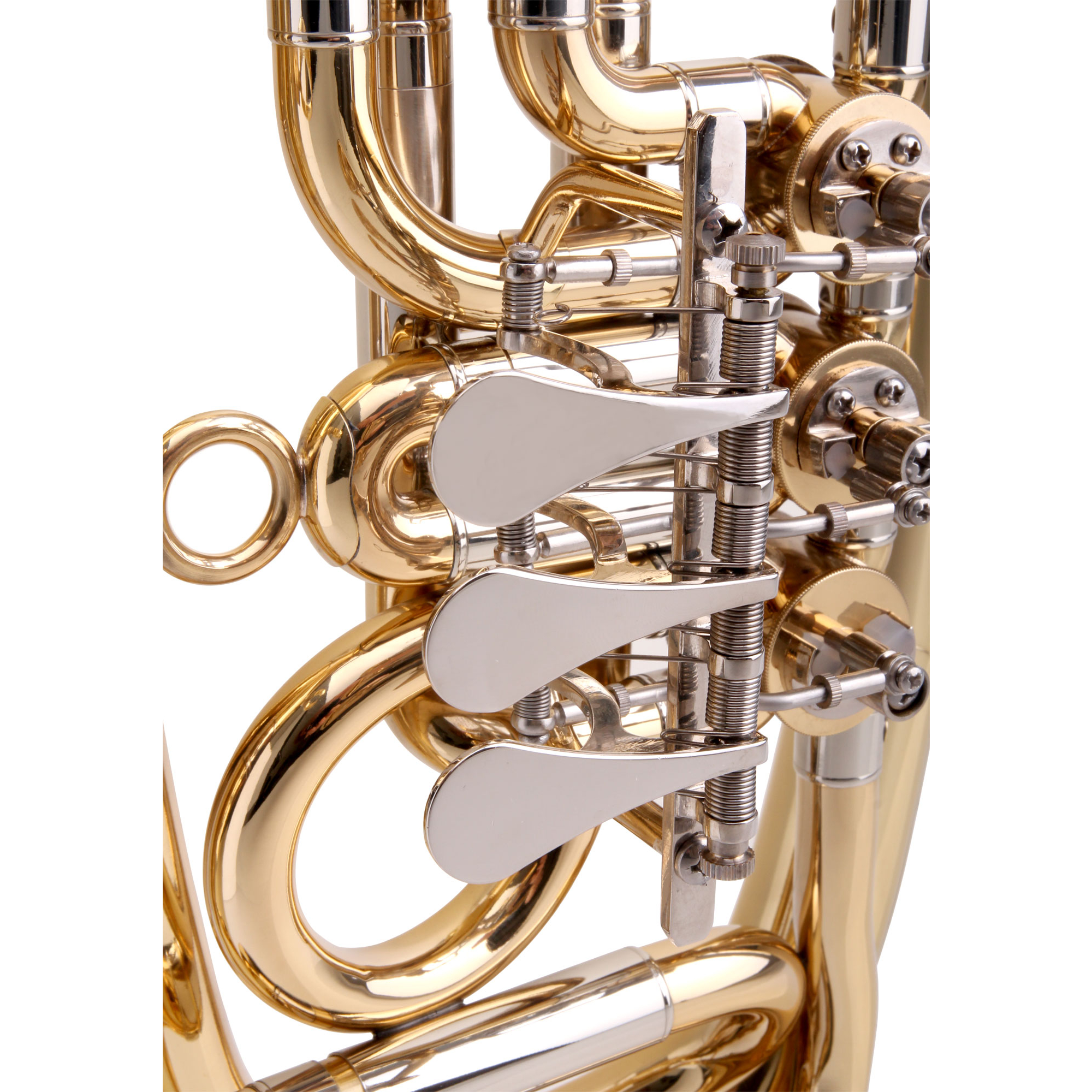 Das Herzstück eines jeden Blechbläsers. Die Maschine jedes Classic Cantabile Brass Instruments wird vor Auslieferung nochmals in unserer eigenen Bläserwerkstatt auf Leichtgängigkeit und Verarbeitung kontrolliert. Diese Vorgehensweise ist Garant für hohen Spielkomfort und zuverlässige Langlebigkeit.