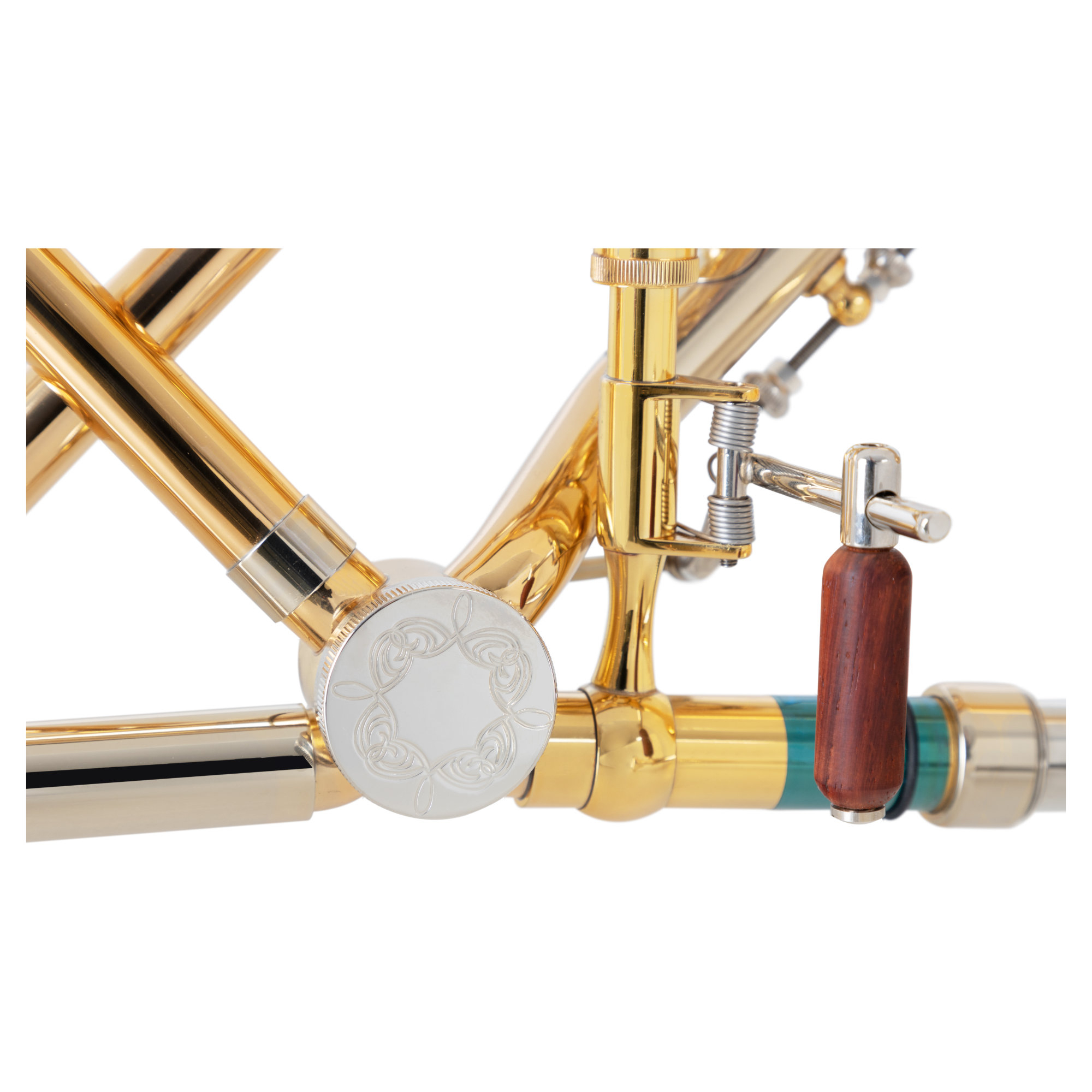 Die Lechgold QP-20GL bietet neben ihrem aus einem Teil handgehämmerten Goldmessing-Schallstück einen zusätzlichen, verstellbaren Stimmzug am Quartventil. Dadurch erhält man die Möglichkeit, die Posaune auf seine persönlichen Vorlieben anzupassen. Die Züge aus Neusilber und das Quartventil mit Minibal-Gelenk sorgen für eine besonders gute Leichtgängigkeit. Der Durchmesser des Schallbechers beträgt 200 mm, die Bohrung 13,8 mm.