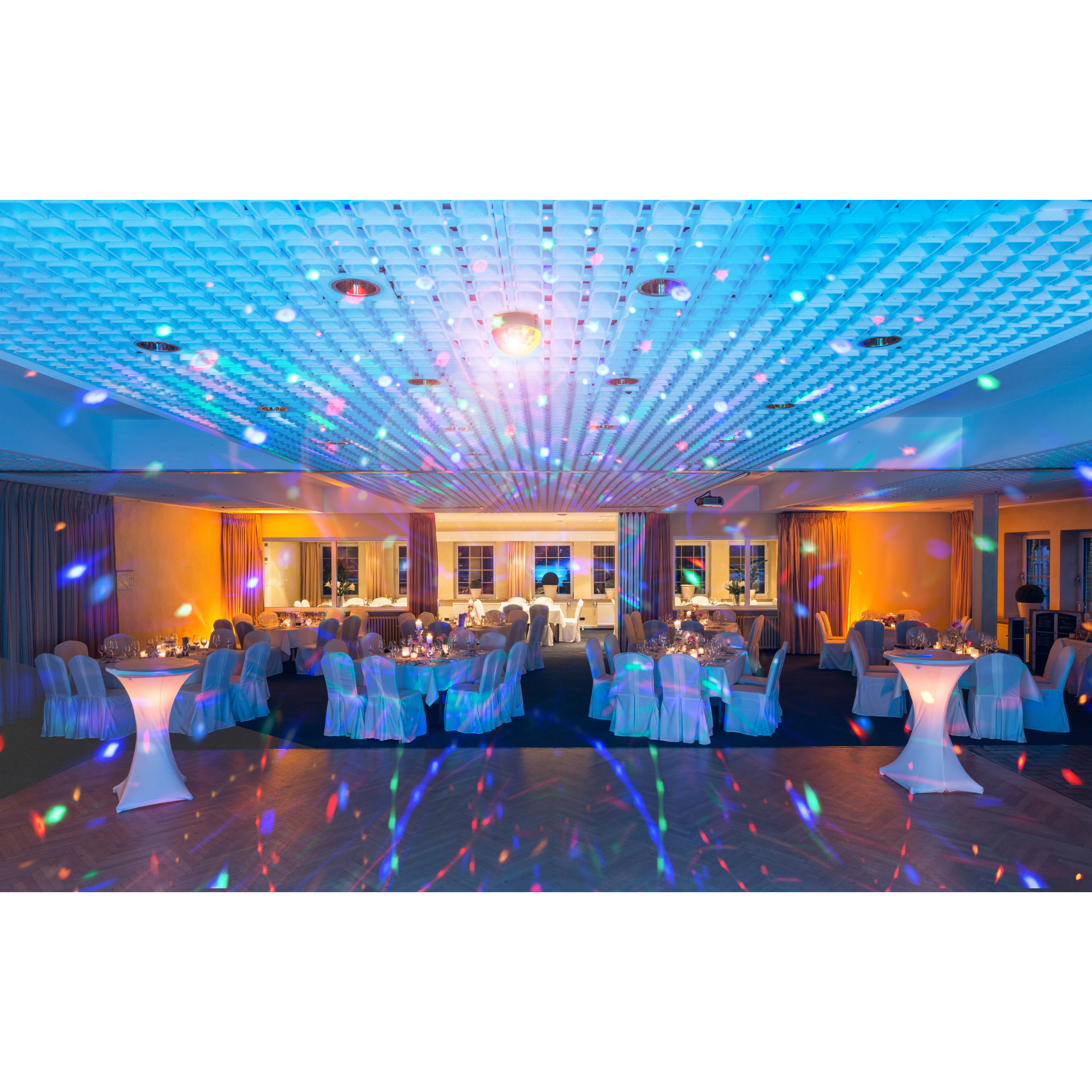 Das vielseitige Party-Licht kann einfach auf den Tisch gestellt werden, um z.B. im Jugendzimmer, im Wohnzimmer oder im Auto eine magische Atmosphäre zu erschaffen. Durch die Aussparungen der seitlich am Boden angebrachten Kunststofffüße kann es aber ebenso mit Schrauben oder Nägeln an der Wand oder Decke befestigt werden und den Partyraum, die Gartenhütte oder jede andere Location Deiner Wahl zum Leuchten bringen. Vor allem in Kombination mit einer Nebelmaschine ergeben sich zauberhafte Effekte.