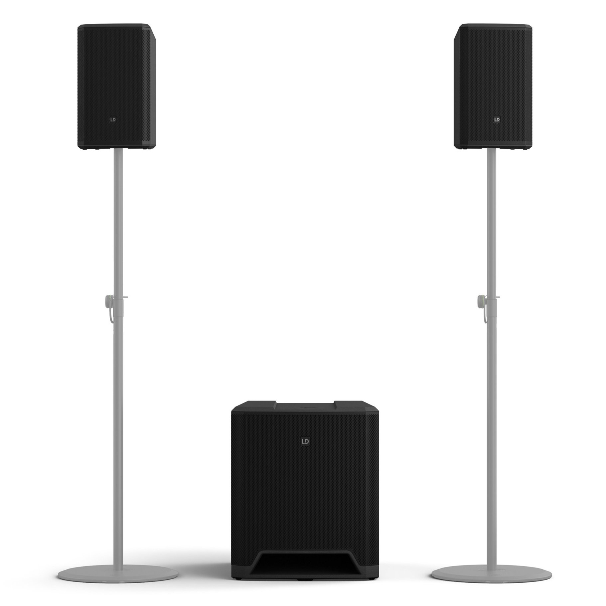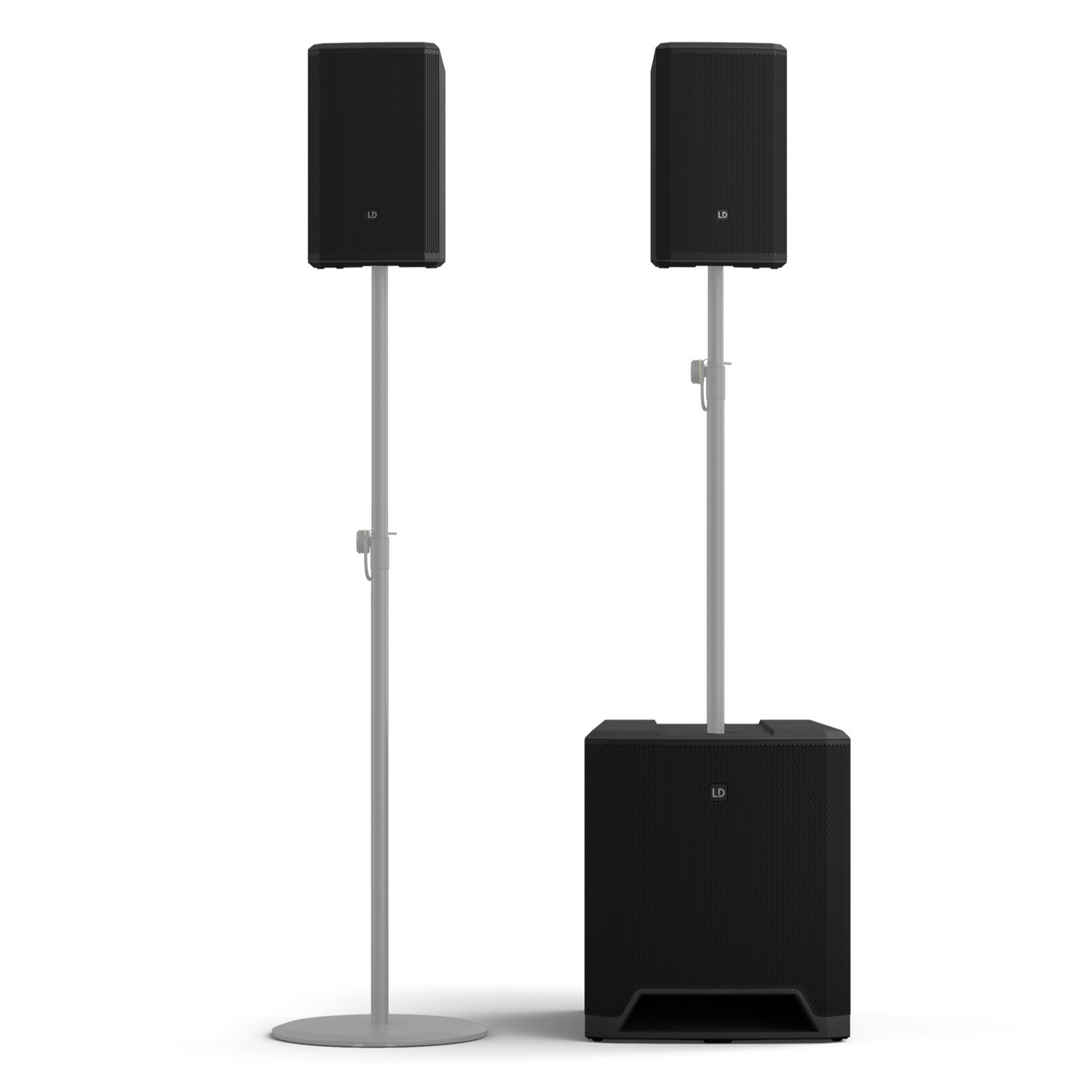 Auch beim Zubehör hat LD Systems an alle gängigen Einsatzmöglichkeiten gedacht. Die Spanne reicht von passgenauen Taschen, über ein Rollbrett bis zum erwähnten T-Stativ.