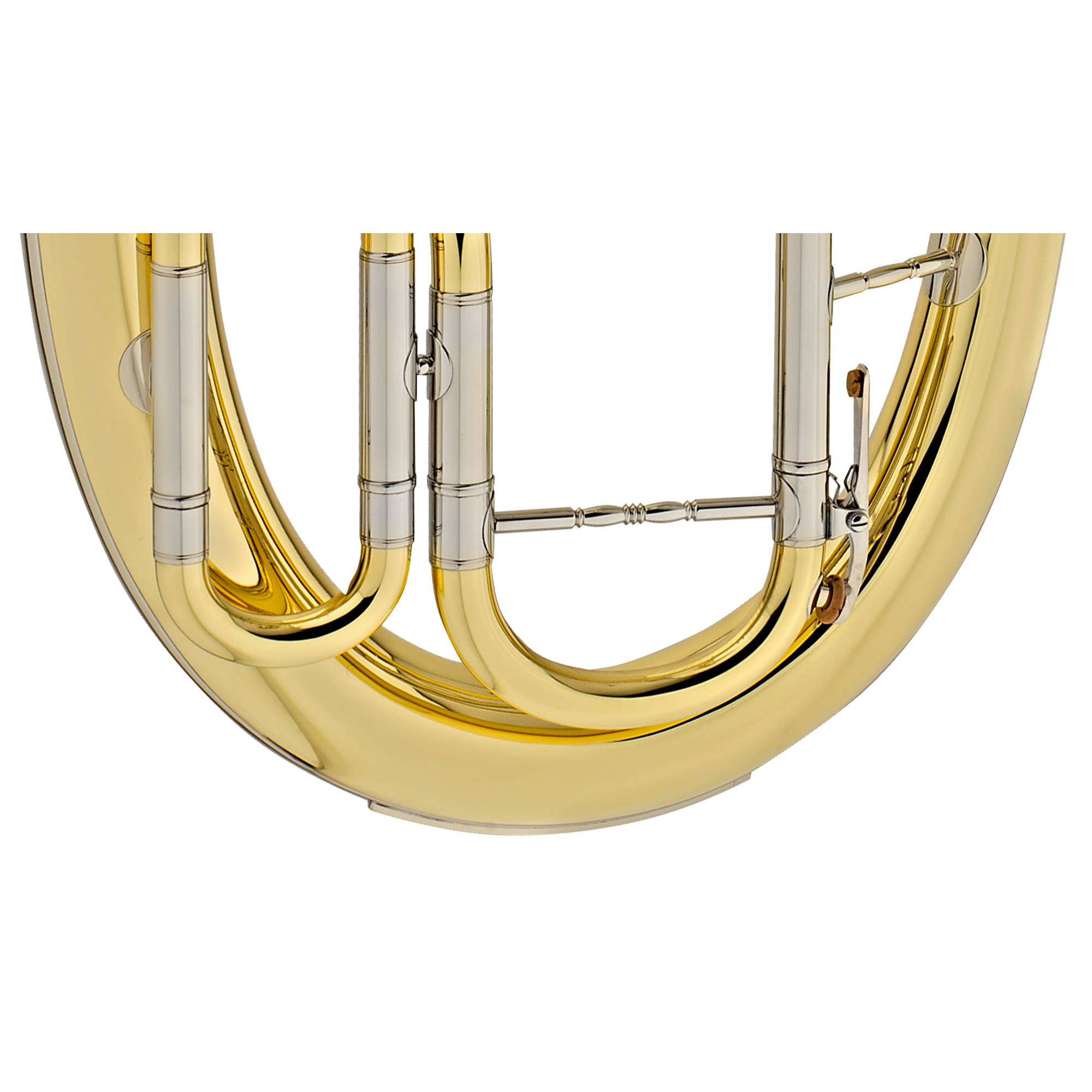 Le ténorhorn est fabriqué en laiton, garantissant une justesse claire et une bonne réponse dans toutes les positions. Le son excellent et la mécanique très fiable de ce ténorhorn sont appréciés aussi bien par les débutants que par les joueurs semi-professionnels. La clé d’eau est montée sur la coulisse principale. La mécanique est équipée d’articulations Minibal, assurant un fonctionnement parfait et fiable des pistons.