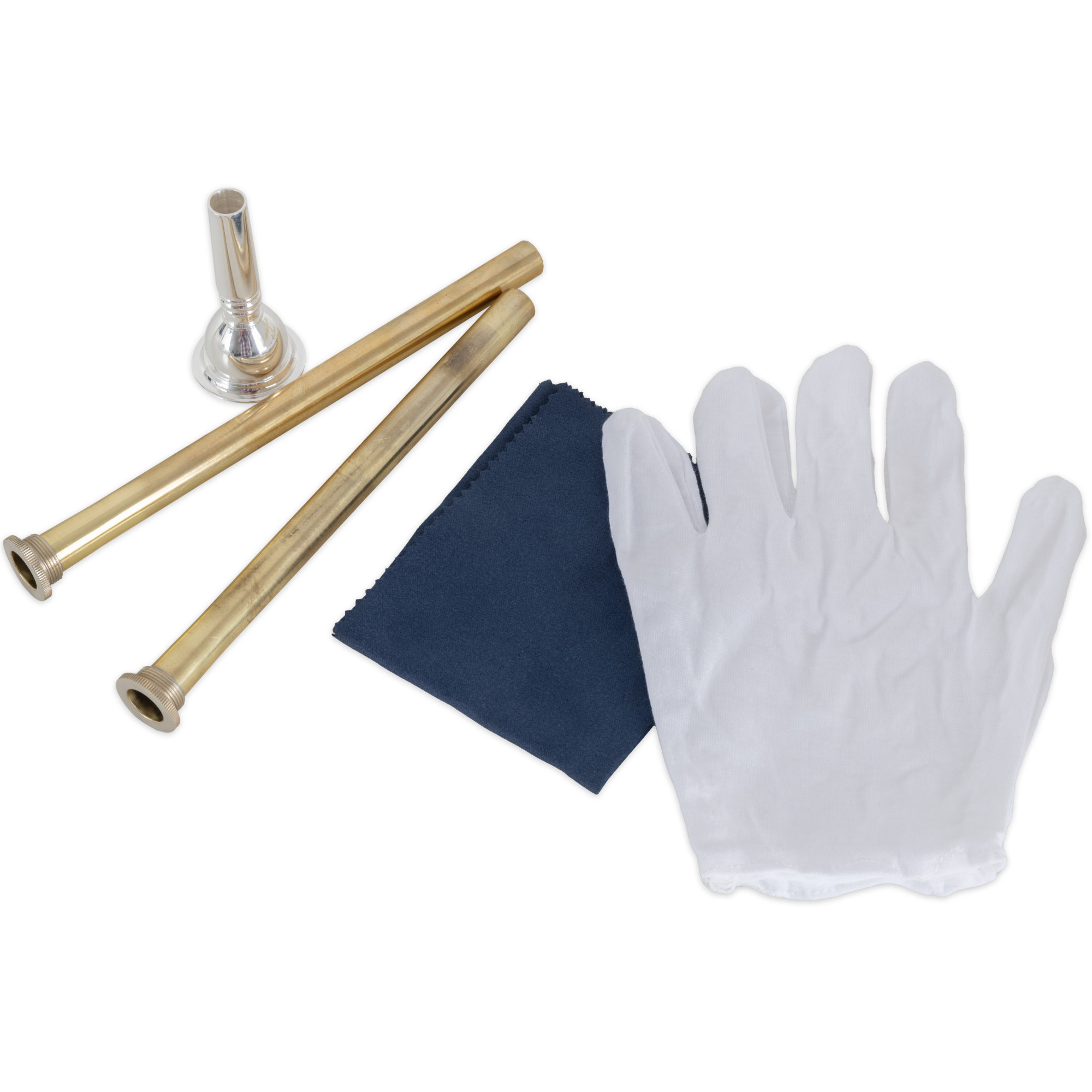 Le Lechgold QP-25L est entièrement fabriqué en laiton. Les coulisses en maillechort et la valve quart avec articulation Minibal assurent une grande facilité de jeu. Le diamètre du pavillon est de 214 mm, la perce de 13,89 mm.